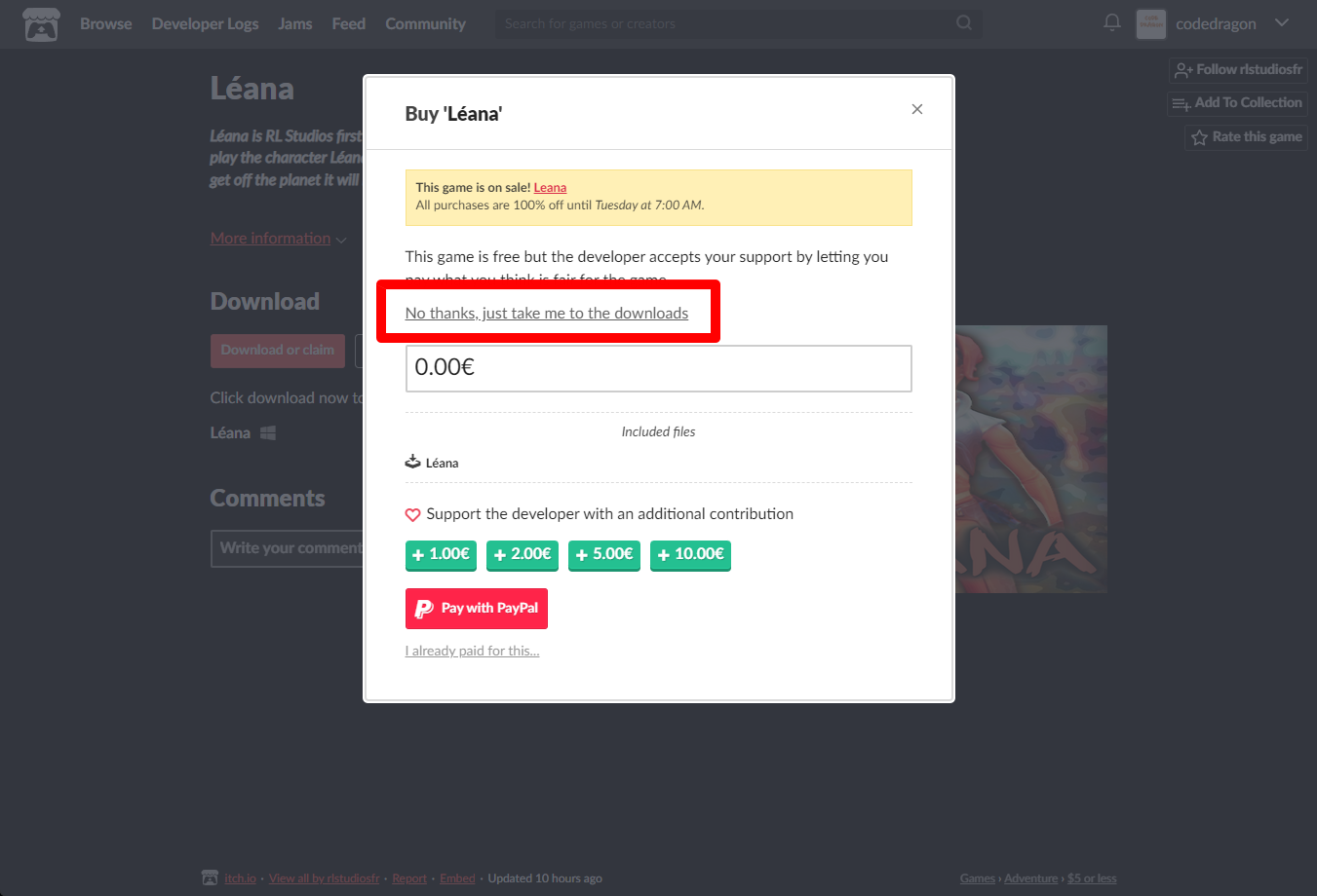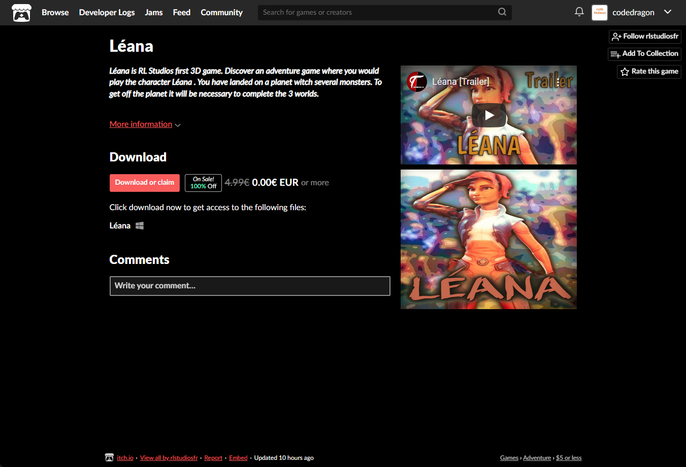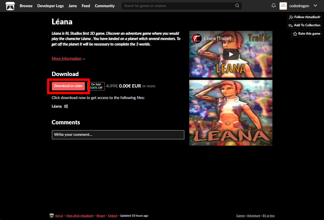 "Léana" 페이지에 있는 [Download or claim]을 클릭합니다.