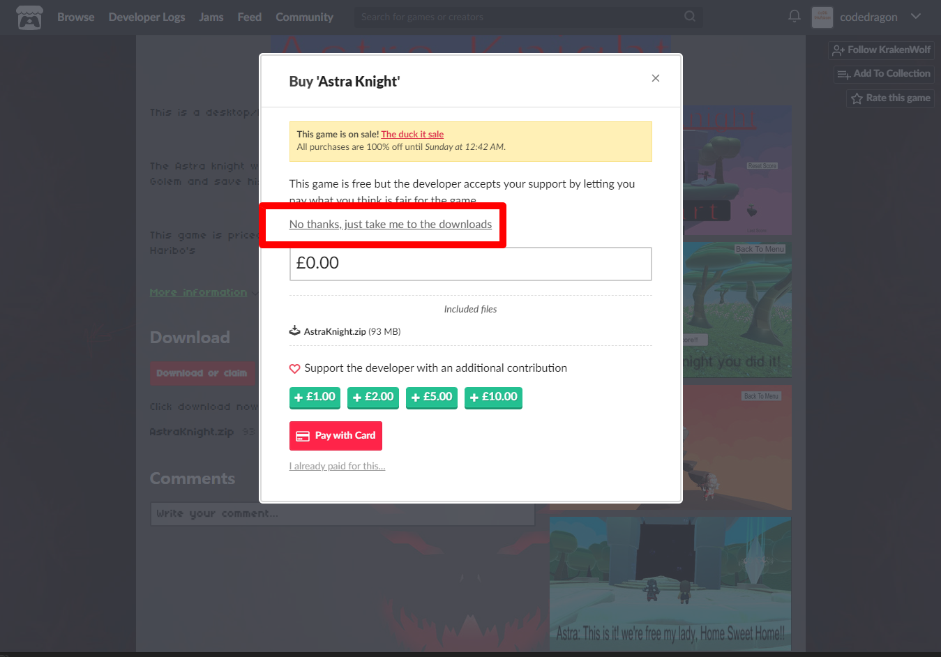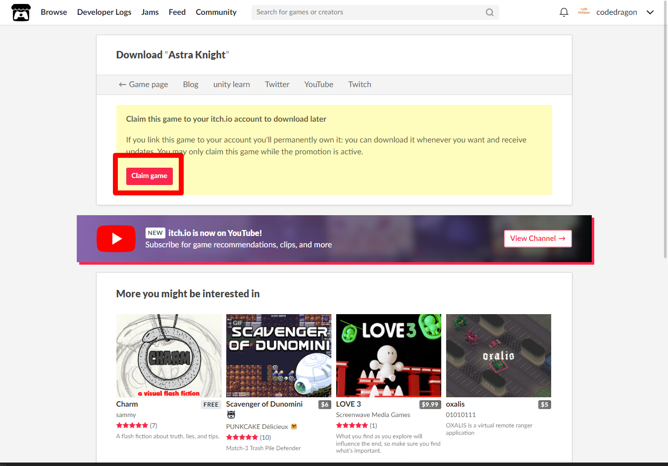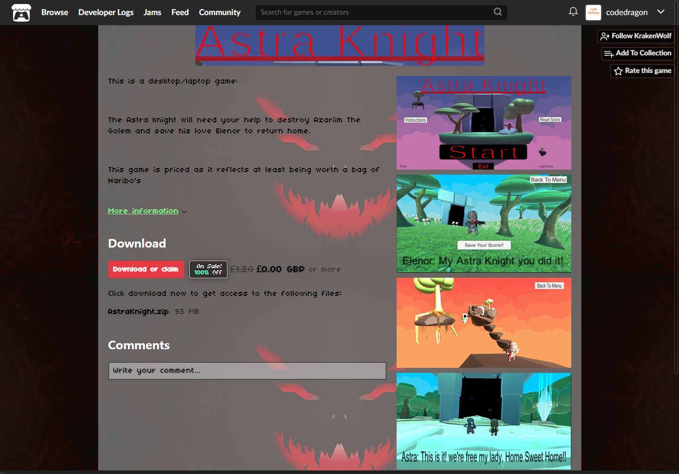 "Astra Knight" 페이지에 있는 [Download or claim]을 클릭합니다.