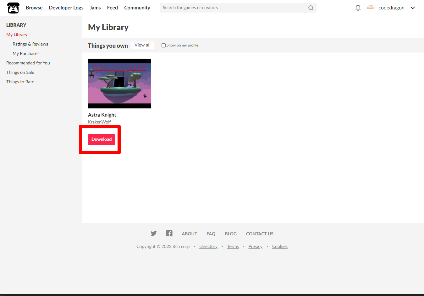 "My Lirary"에서 방금 받은 "Astra Knight" 게임 항목을 확인할 수 있습니다.