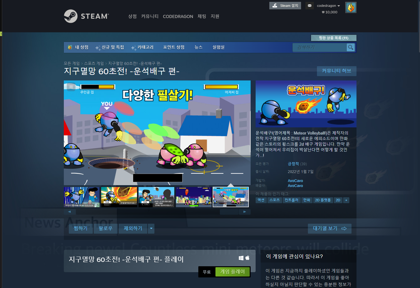 "Meteor Volleyball!" 스팀 페이지 입니다.
