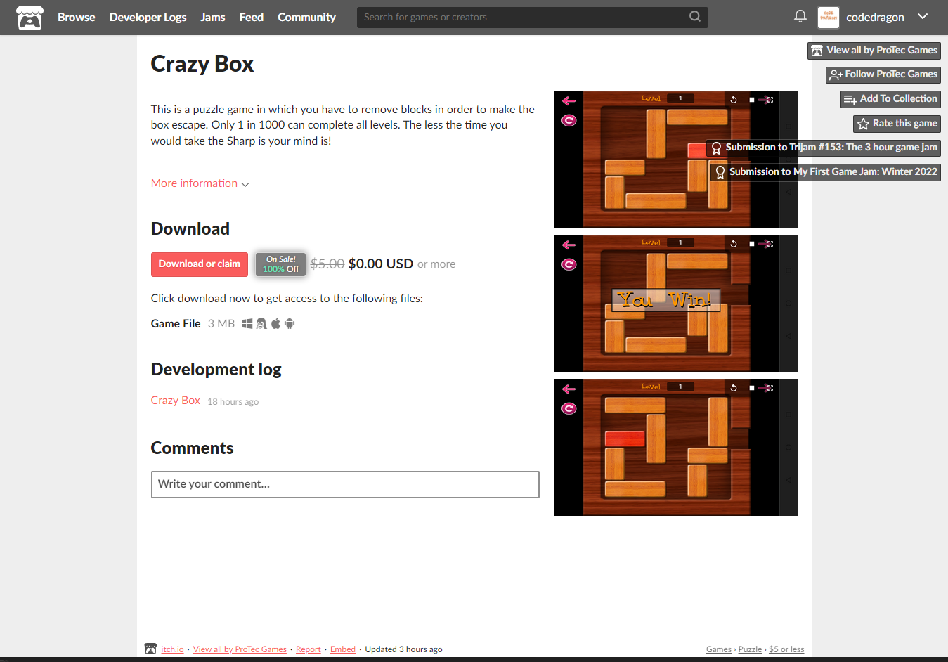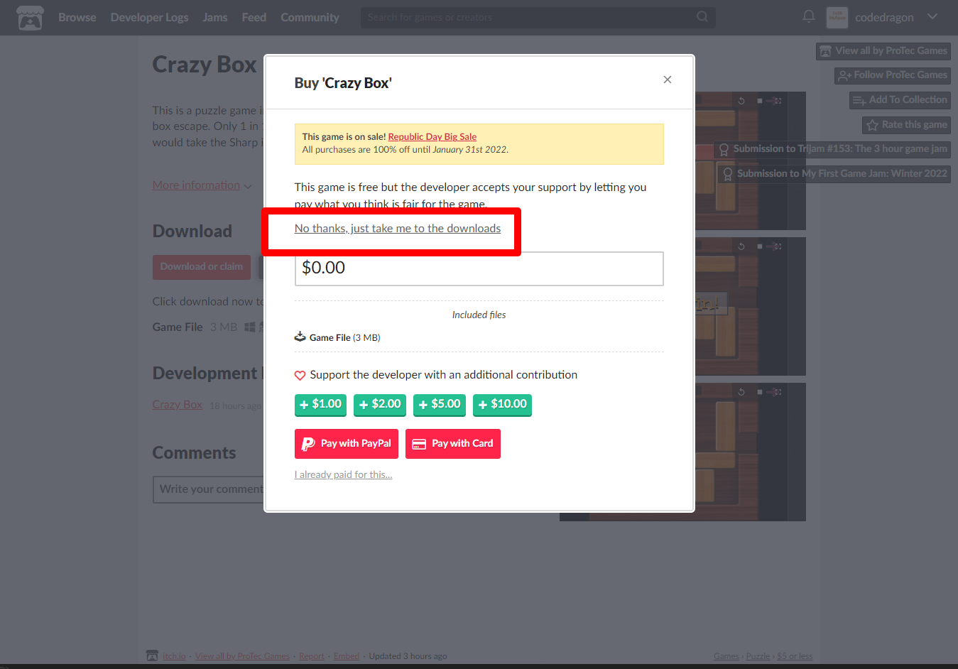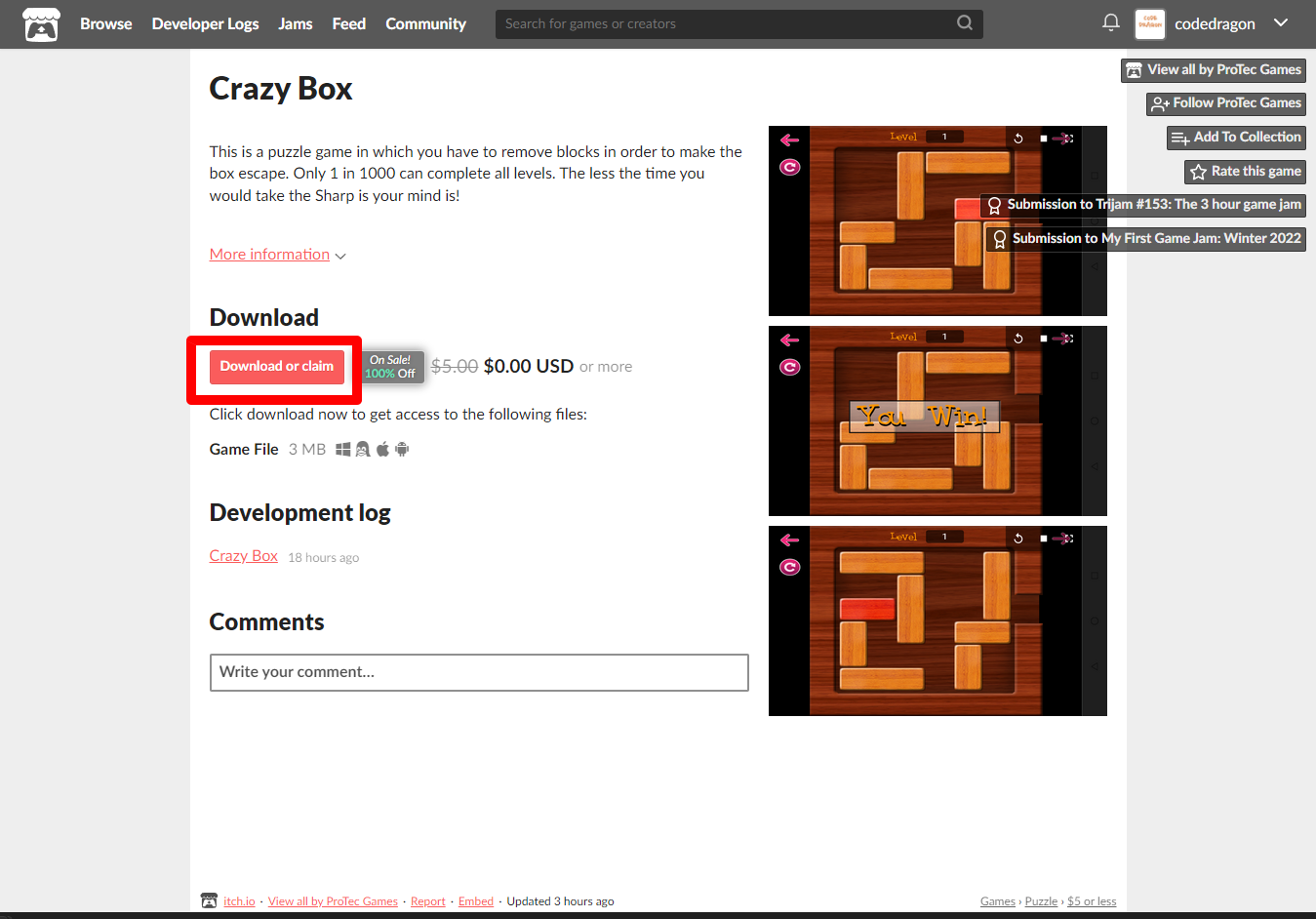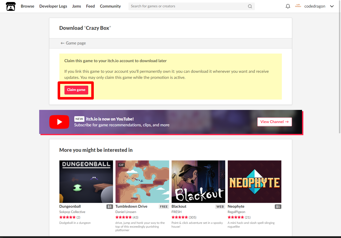 "Crazy Box" 페이지에 있는 [Download or claim]을 클릭합니다.