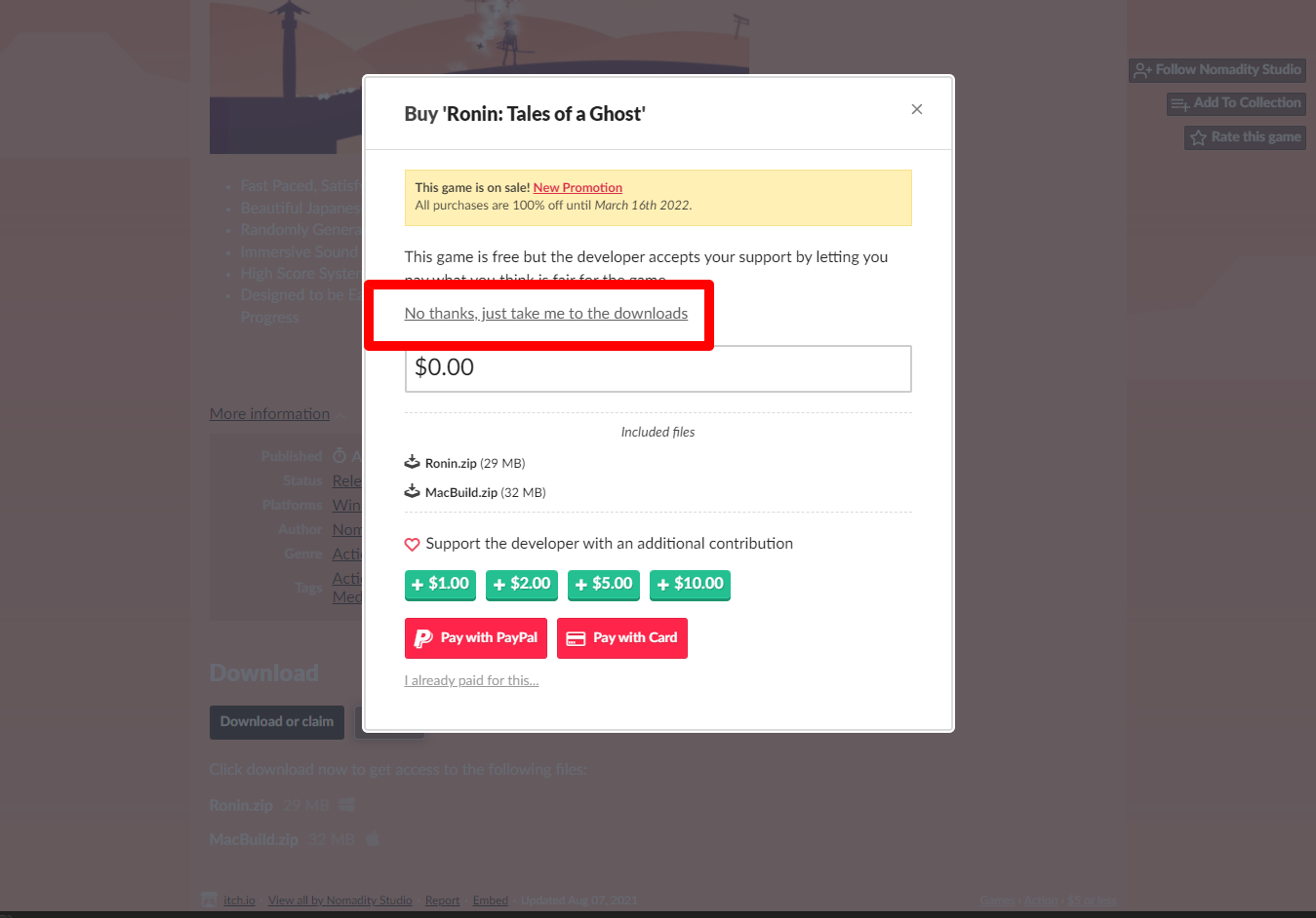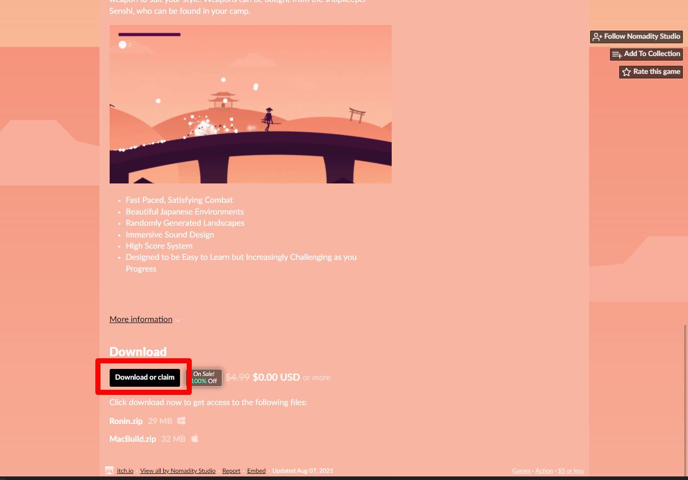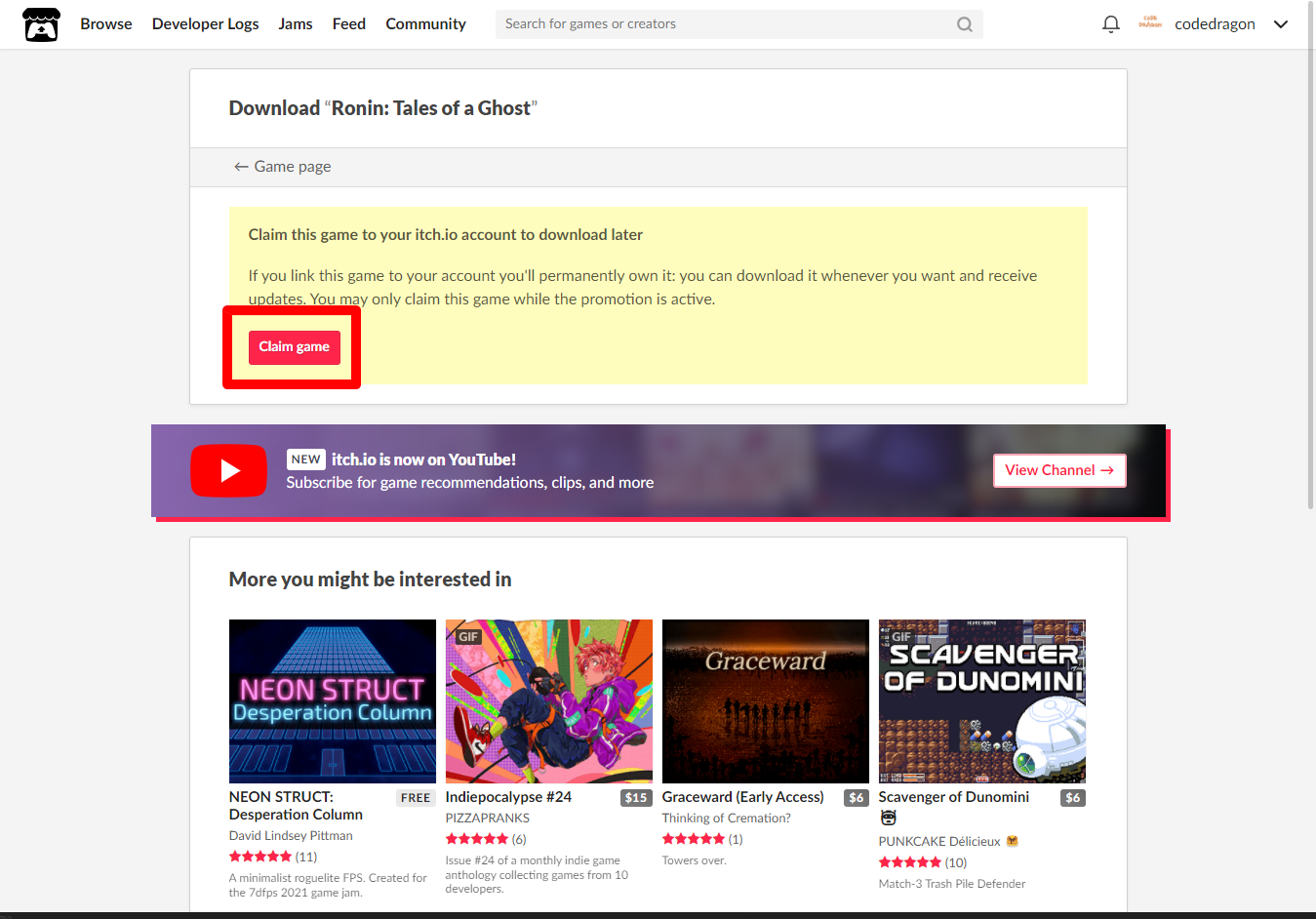 "Ronin: Tales of a Ghost" 페이지에 있는 [Download or claim]을 클릭합니다.