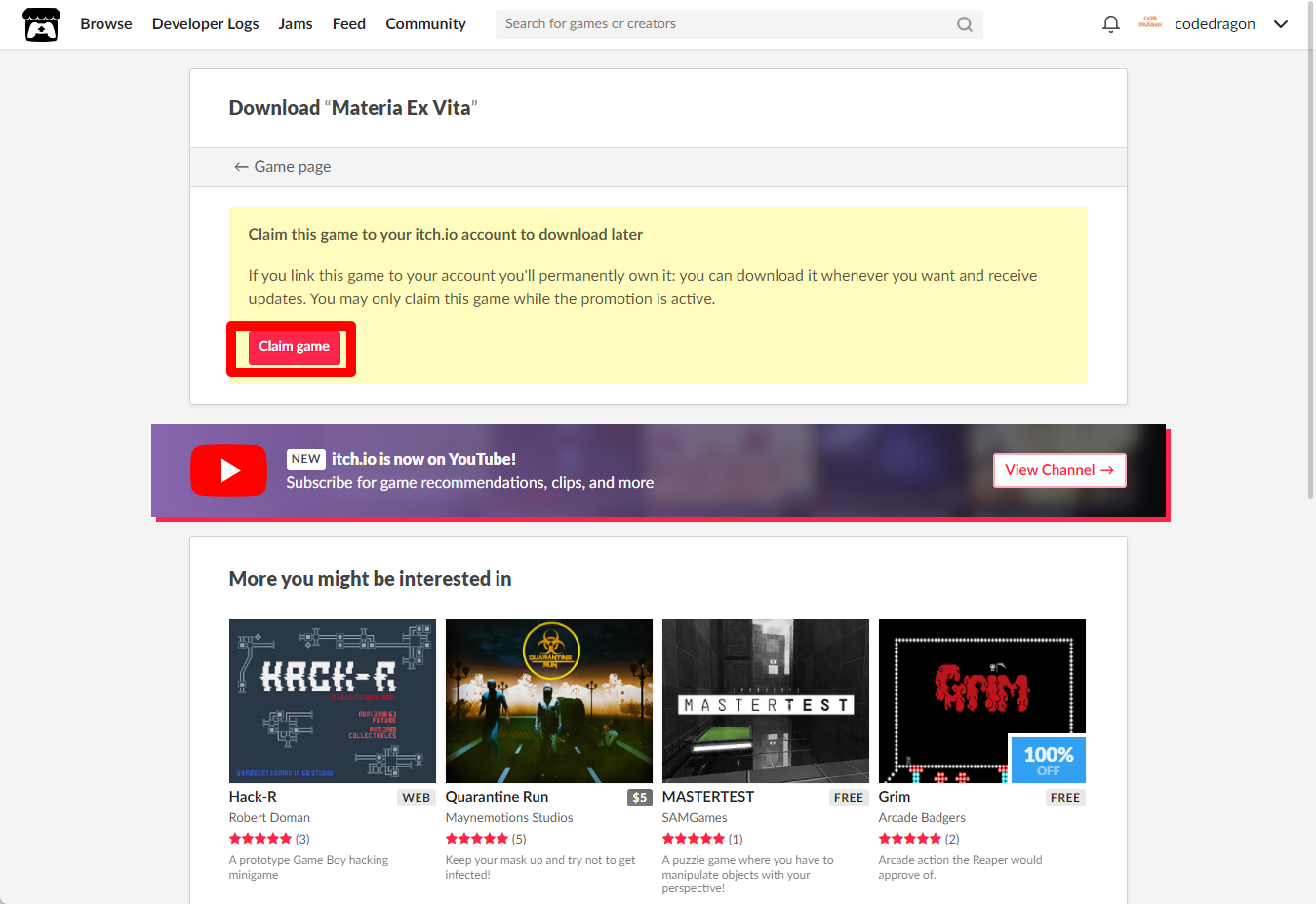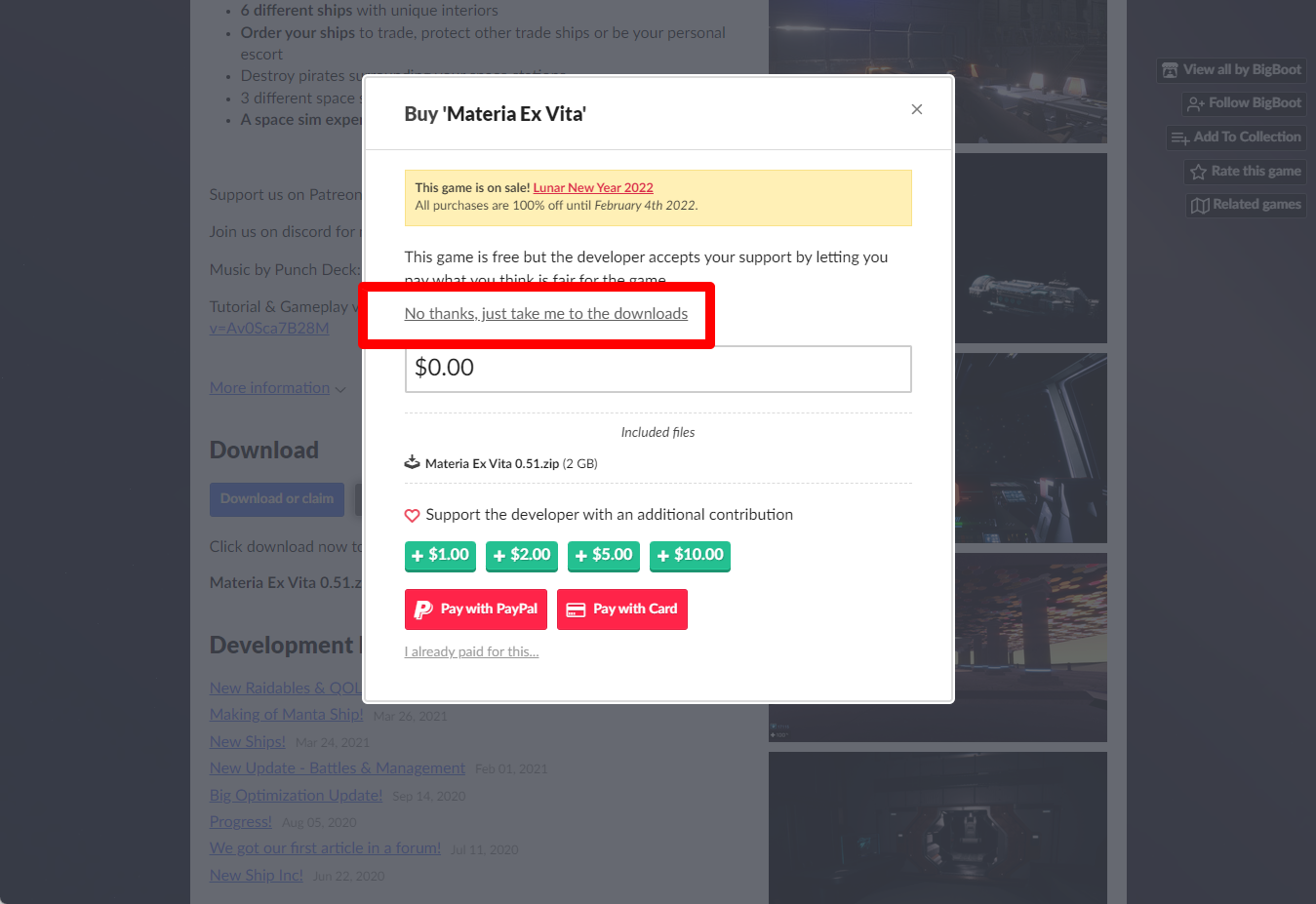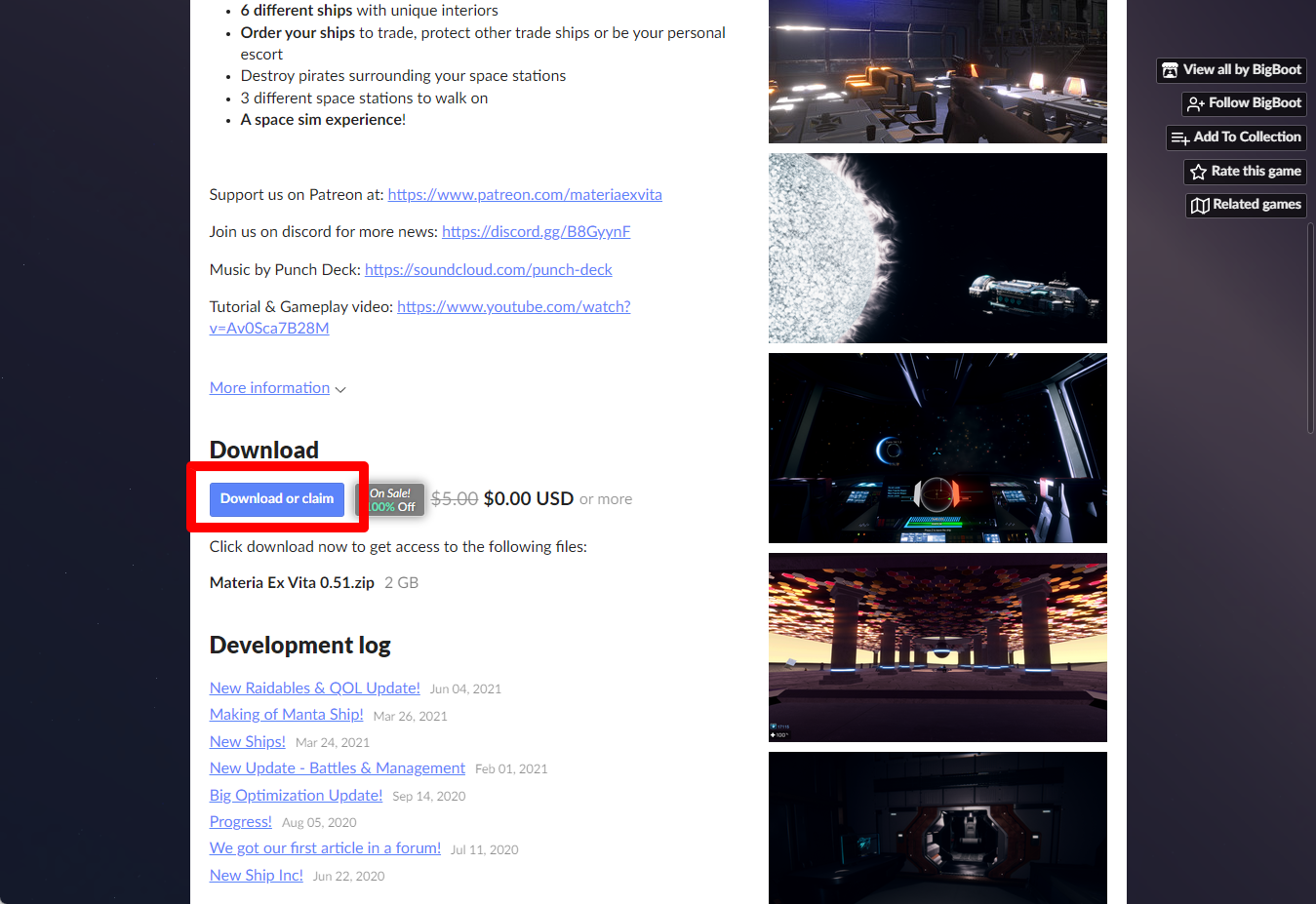 "Materia Ex Vita" 페이지를 내려서 [Download or claim]을 클릭합니다.