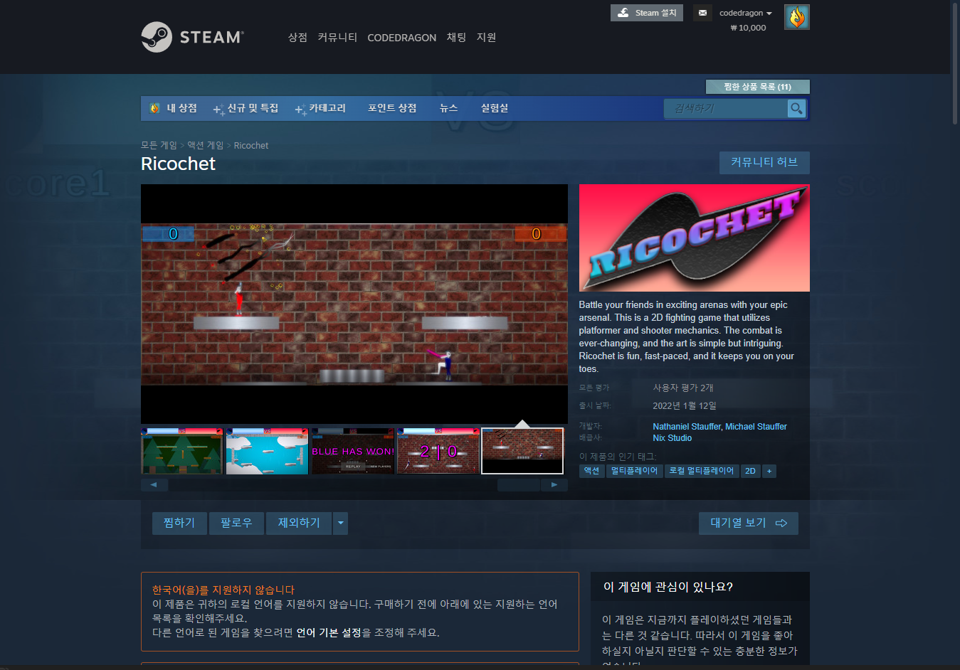 "Ricochet" 스팀 페이지 입니다.