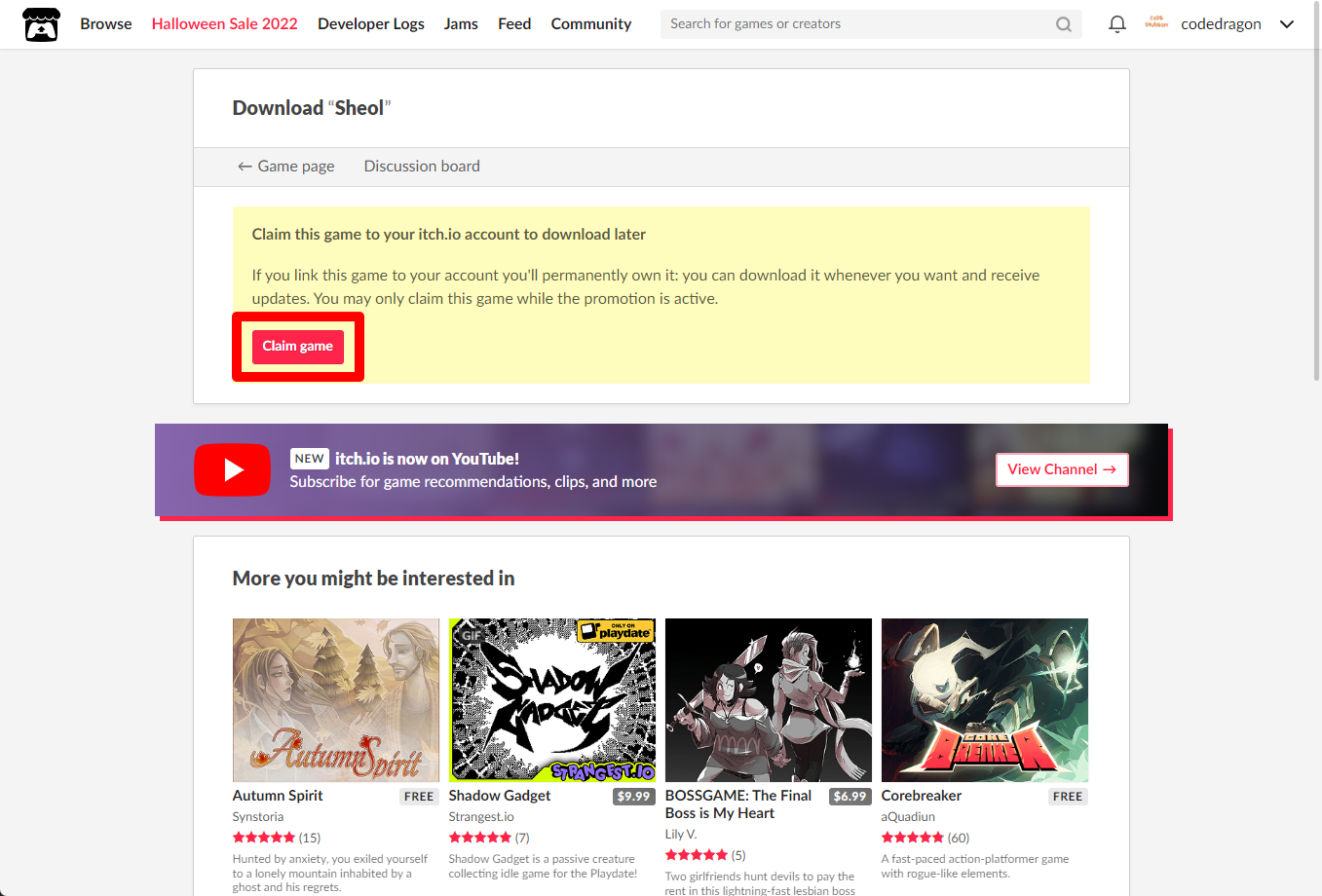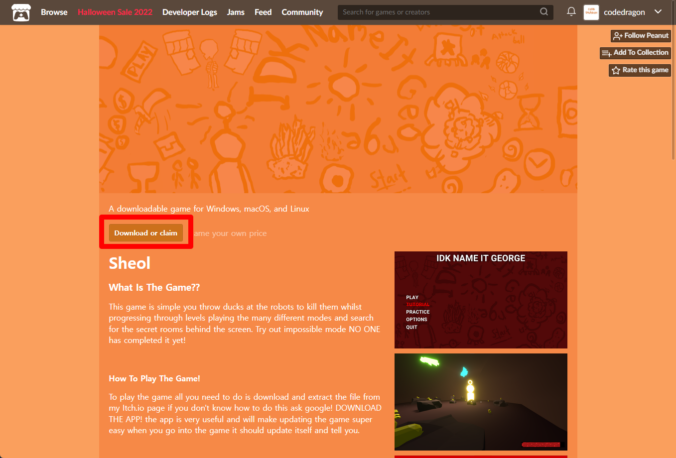 "Sheol" 페이지에 있는 [Download or claim]을 클릭합니다.