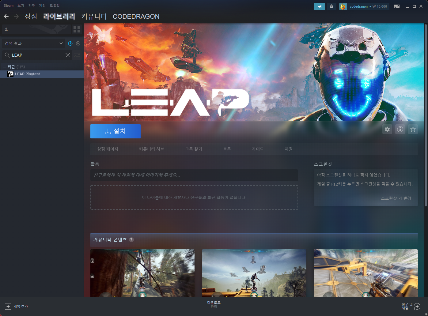 LEAP 리프 Closed Beta 클로즈 베타 - Steam 스팀키 라이브러리에 등록하기