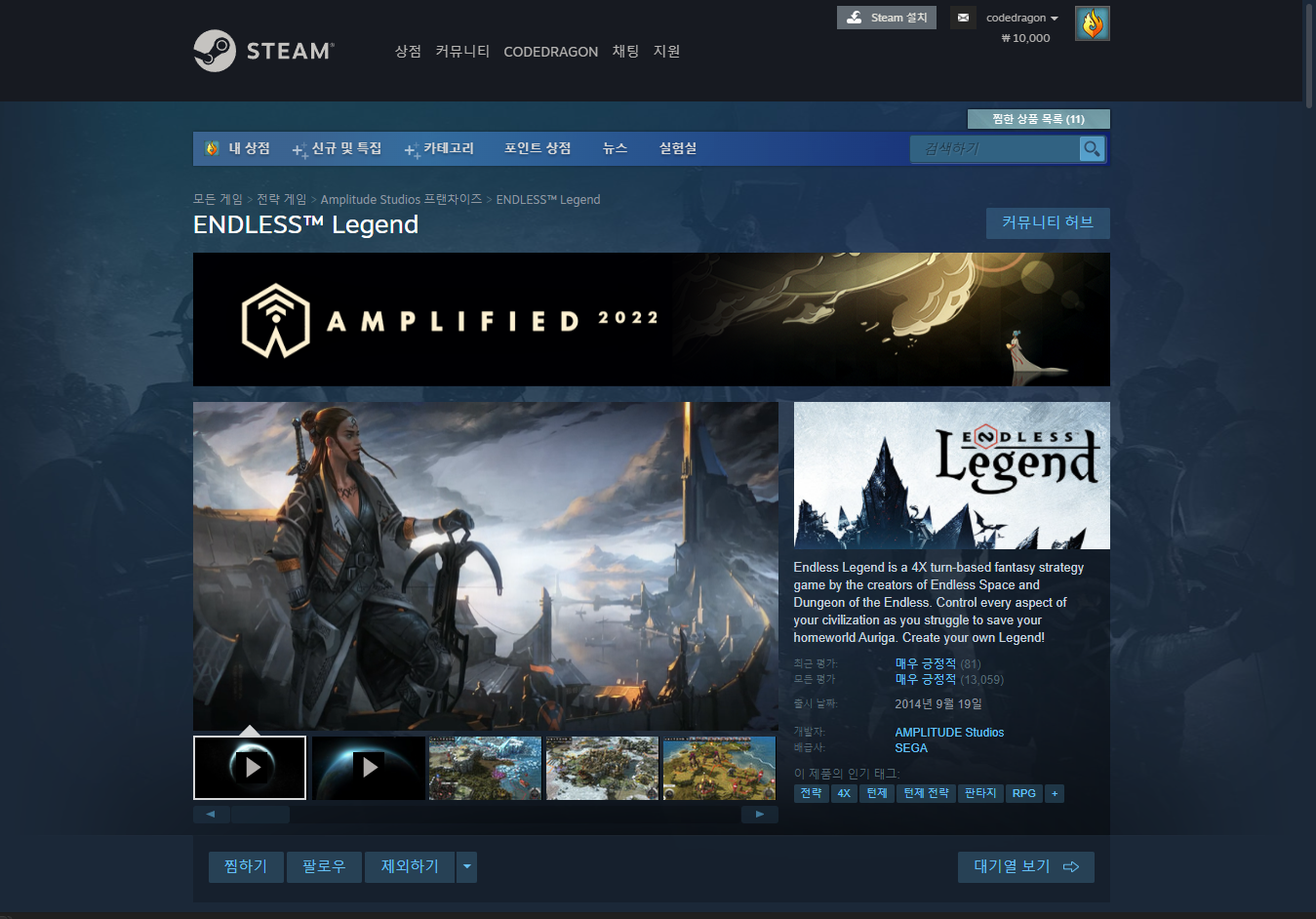 금주 게임은 "전략" 게임인 "ENDLESS Legend" 입니다.