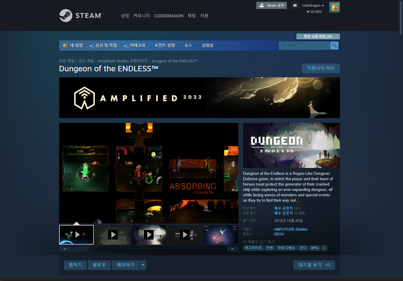 "Dungeon of the ENDLESS" 게임페이지에 접속합니다.
