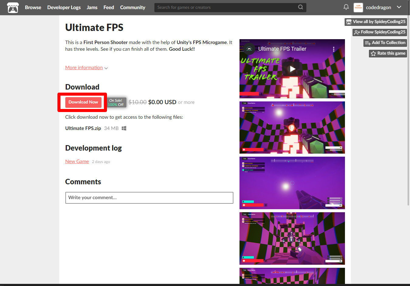 "Ultimate FPS" 해당 항목에 있는 [Download] 버튼을 클릭하면 게임의 설치파일을 다운받을 수 있습니다.