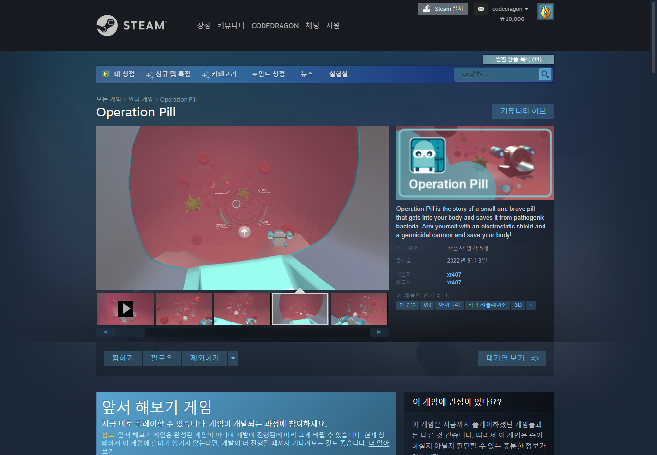 "Operation Pill" 스팀 페이지 입니다.
