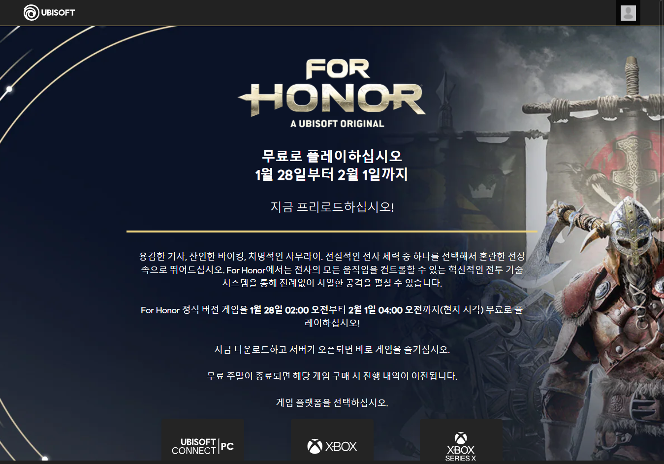 For Honor 포 아너 - Ubisoft 유비소프트, 에픽 Epic games 금주 무료 플레이 Play for Free weekend on UbiConnect Uplay