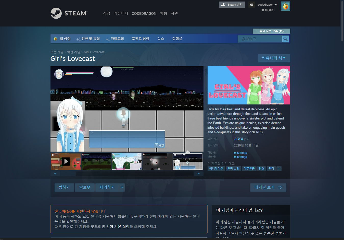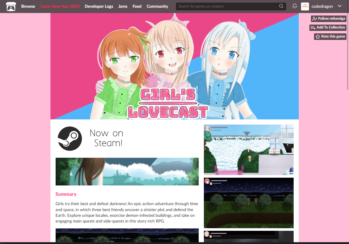 "Girl's Lovecast" 스팀 Steam 게임 페이지