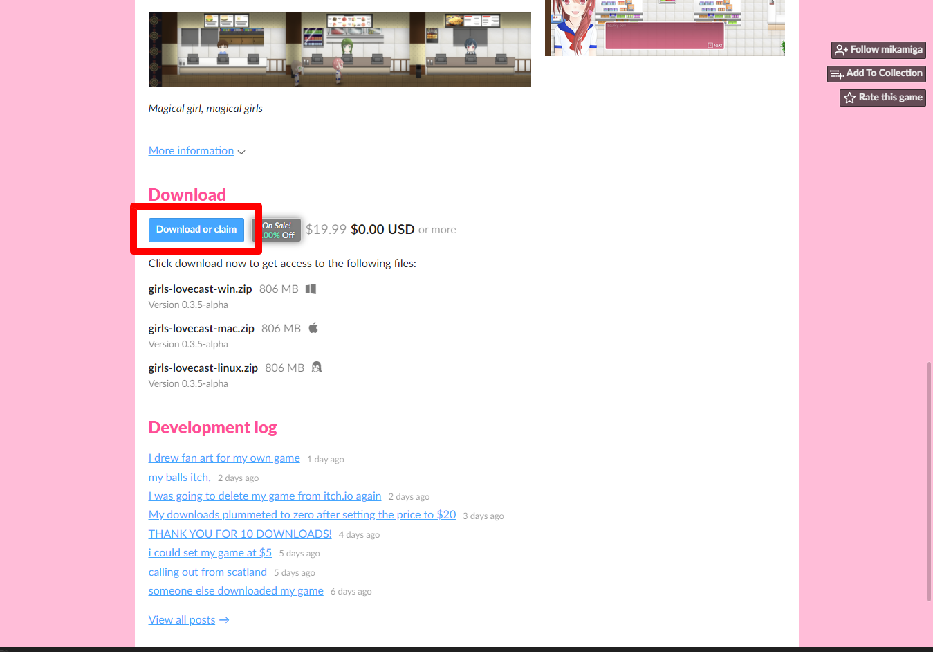 "Girl's Lovecast" 페이지를 아래로 내려서 [Download or claim]을 클릭합니다.