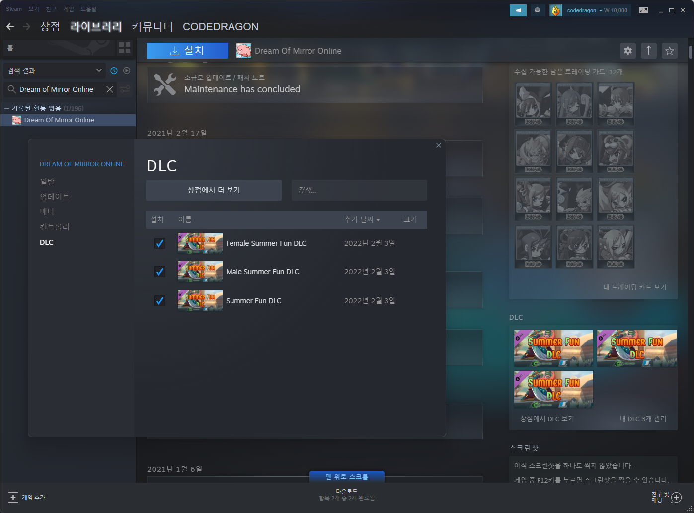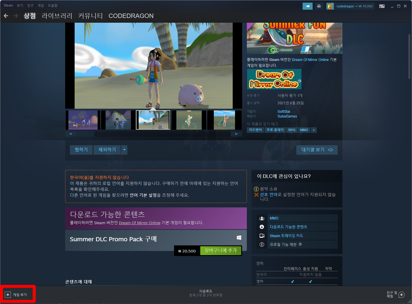 - "Dream Of Mirror Online: Male Summer Fun DLC" 게임설치