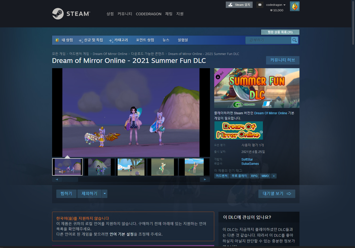 - "Dream Of Mirror Online: Male Summer Fun DLC" 게임 페이지
