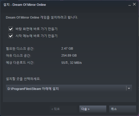 "Dream Of Mirror Online" 게임 설치