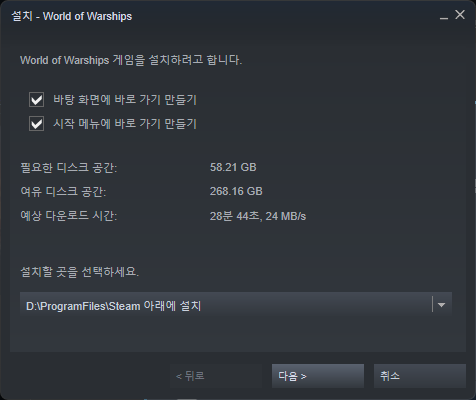 스팀런처 실행이 끝나면 원하는 위치에 설치를 완료해 줍니다.