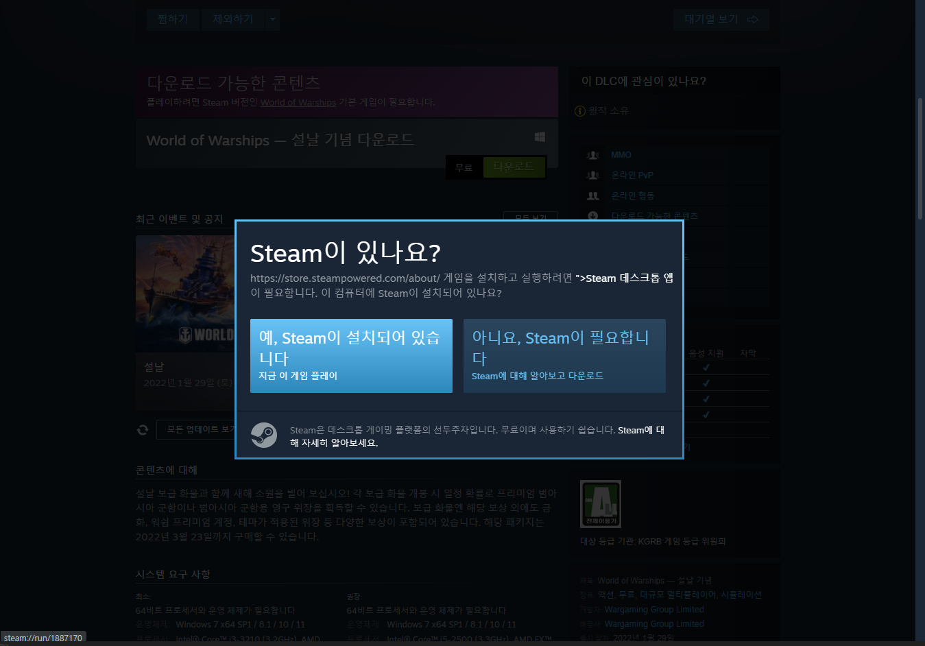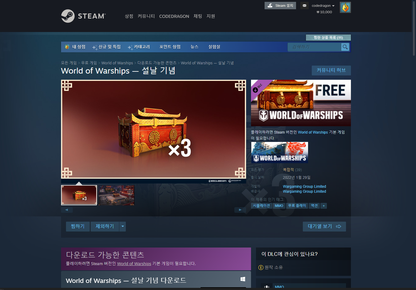 "World of Warships — 설날 기념" DLC 게임페이지에 접속합니다.