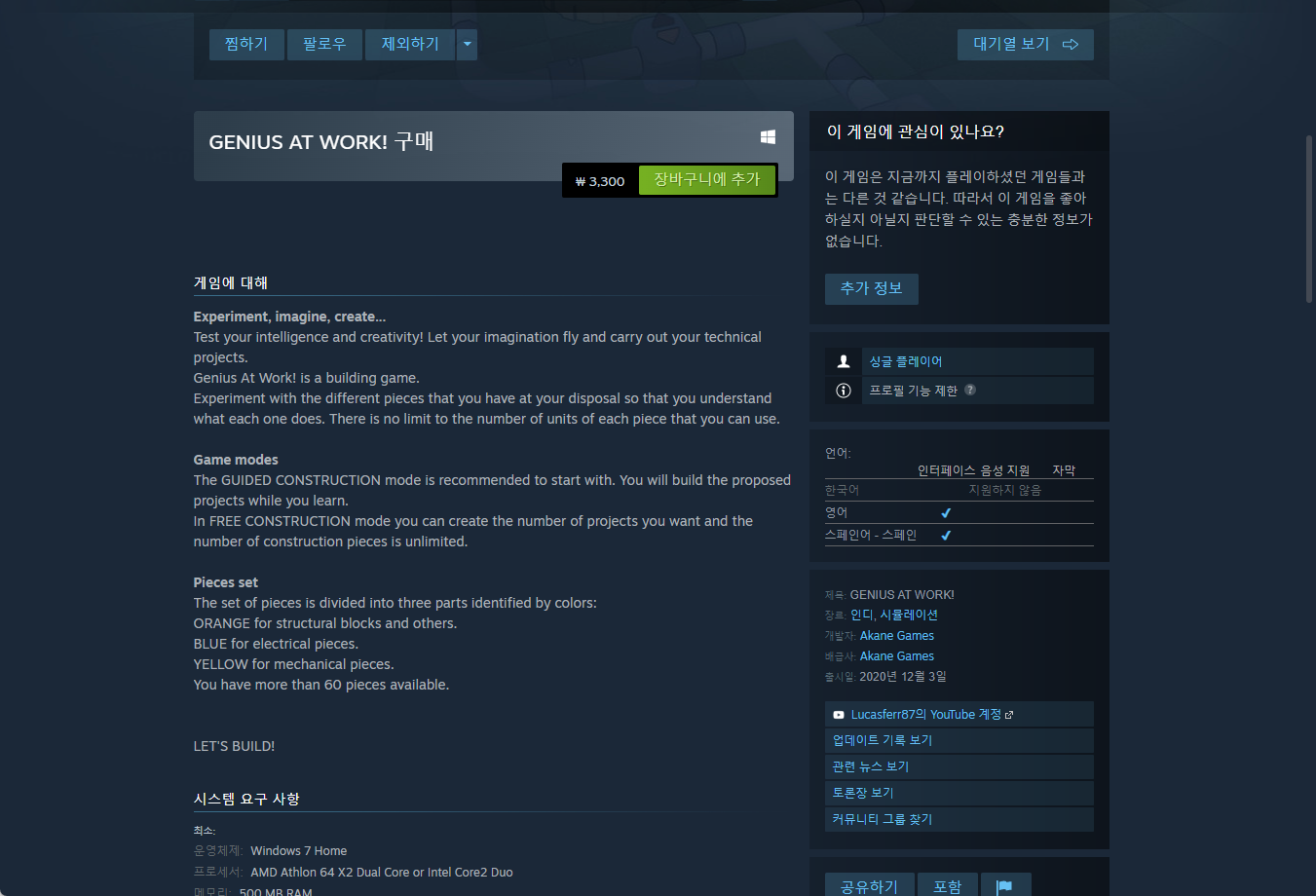 - "GENIUS AT WORK! " 스팀 Steam 페이지
