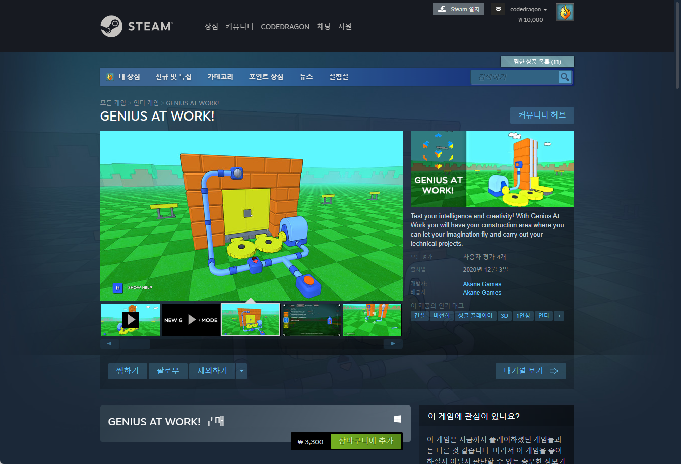 "GENIUS AT WORK! " 스팀 Steam 페이지