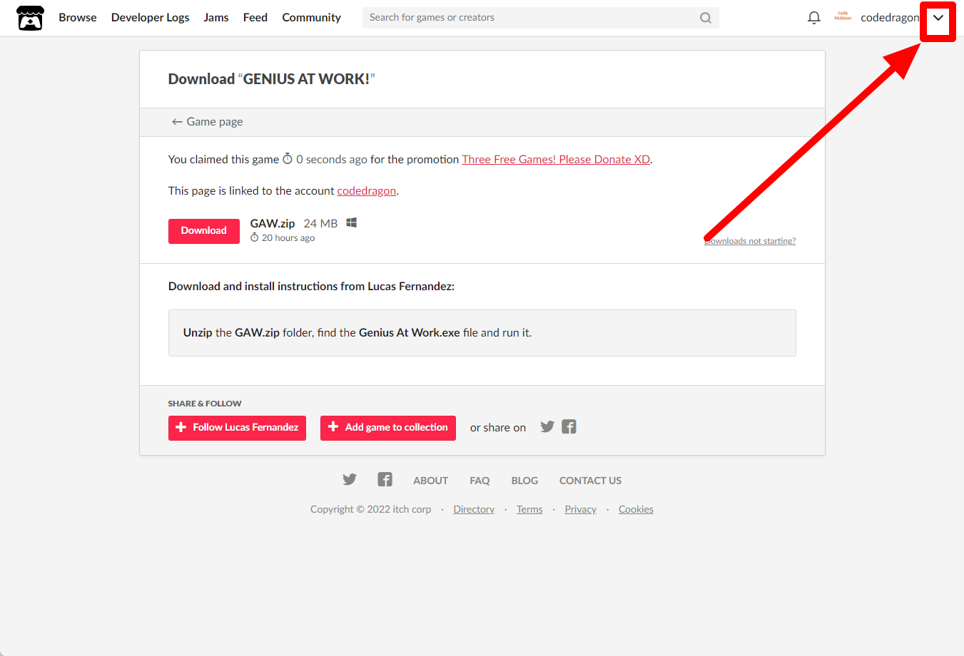 "GENIUS AT WORK!" 페이지에 있는 [Download or claim]을 클릭합니다.