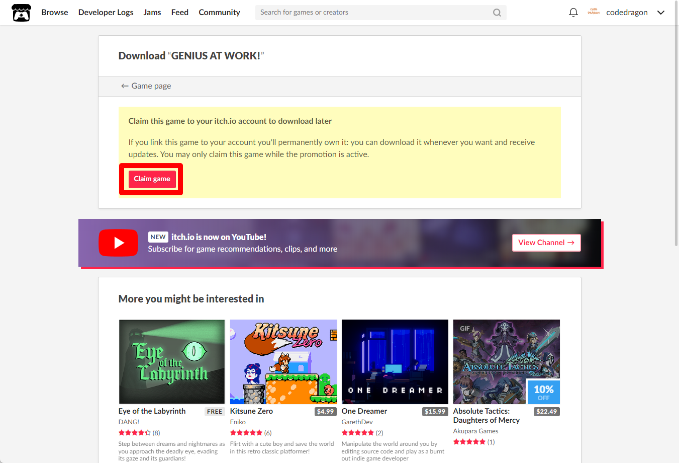"GENIUS AT WORK!" 페이지에 있는 [Download or claim]을 클릭합니다.