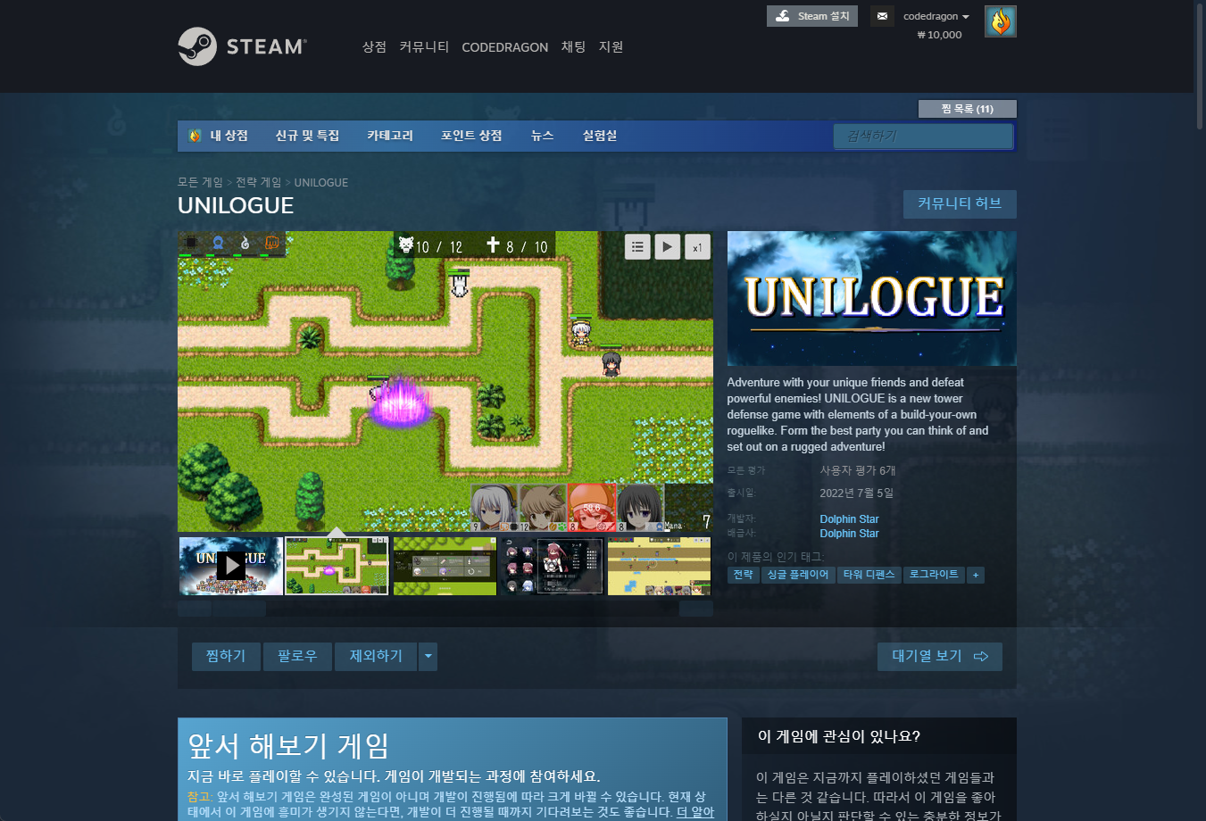 "UNILOGUE" 스팀 페이지 입니다.