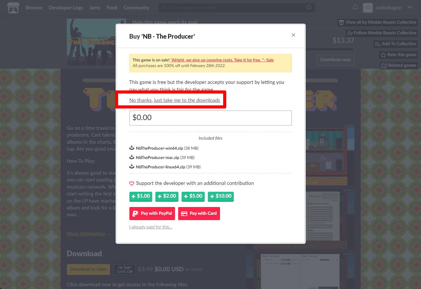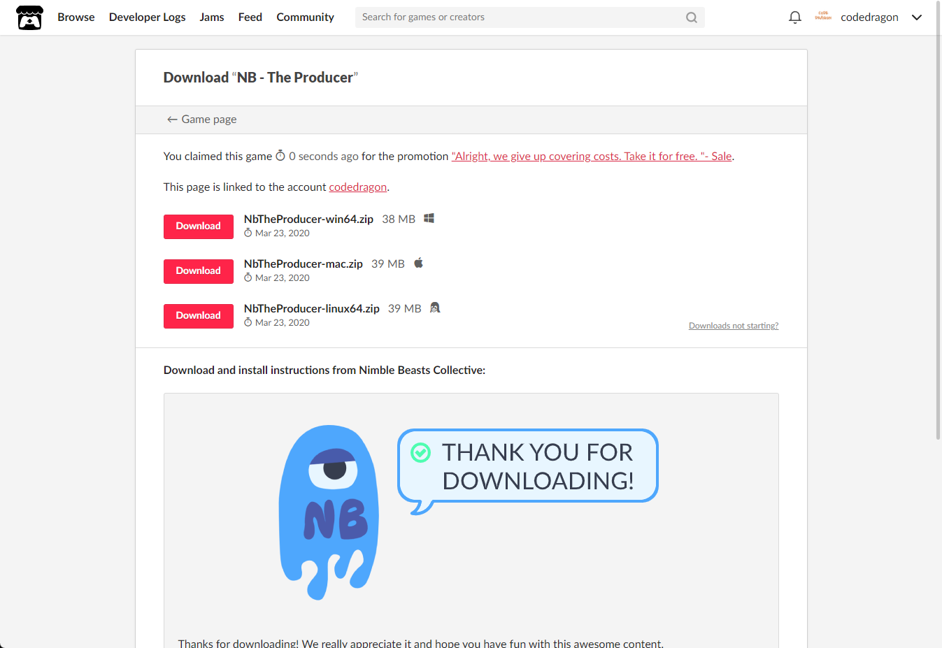 "NB - The Producer" 페이지에 있는 [Download or claim]을 클릭합니다.