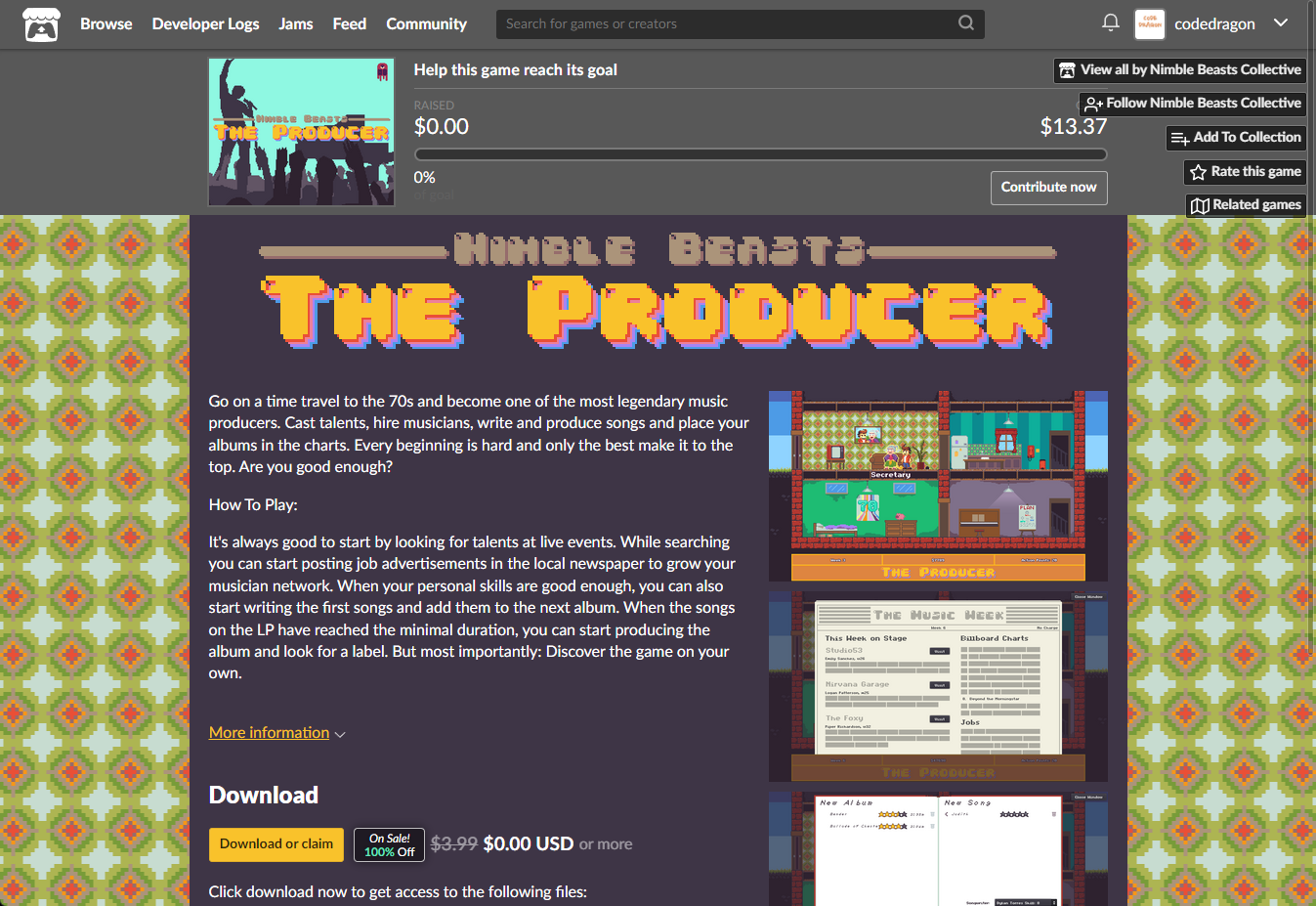 ₩4,784 -> ₩0(Free) NB - The Producer NB - 더 프로듀서 무료로 받기 영구소장 - itch.io 잇치 닷 아이오 한시적 무료 소장하기