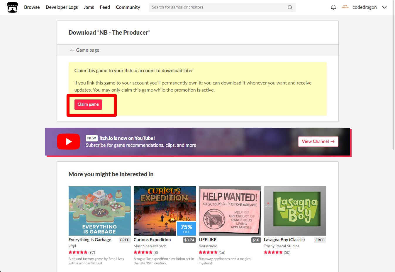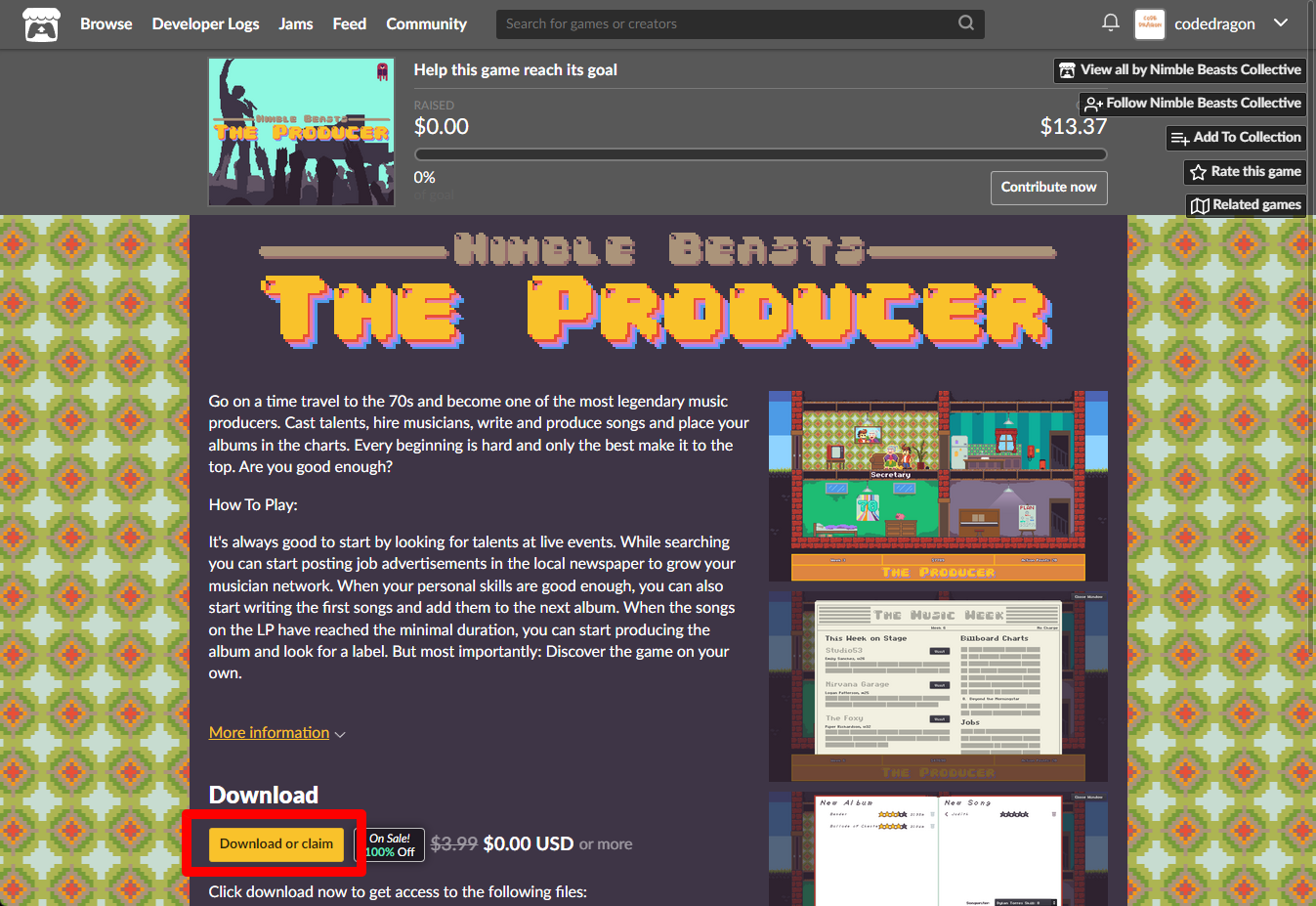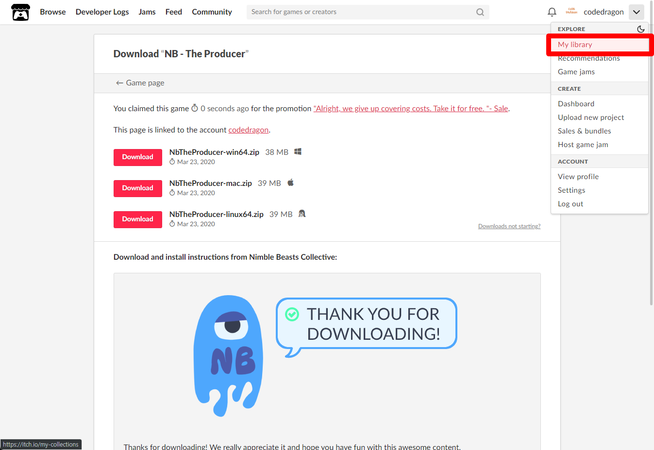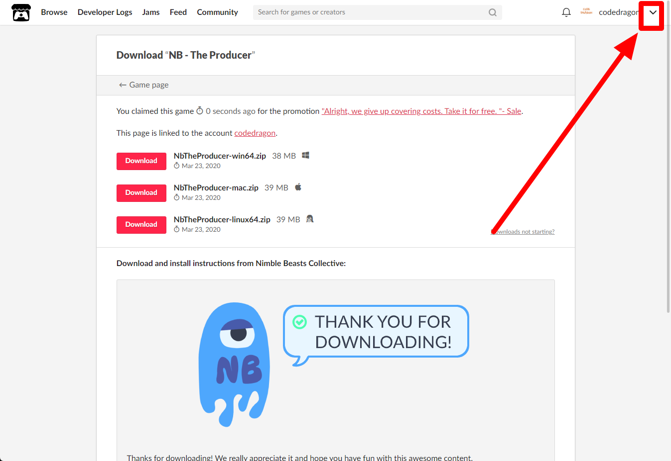 "NB - The Producer" 페이지에 있는 [Download or claim]을 클릭합니다.