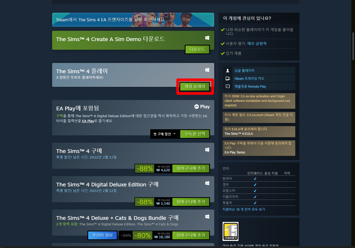 The Sims 4 심즈 4 - Steam 스팀 금주 무료 플레이 Play for Free weekend on Steam