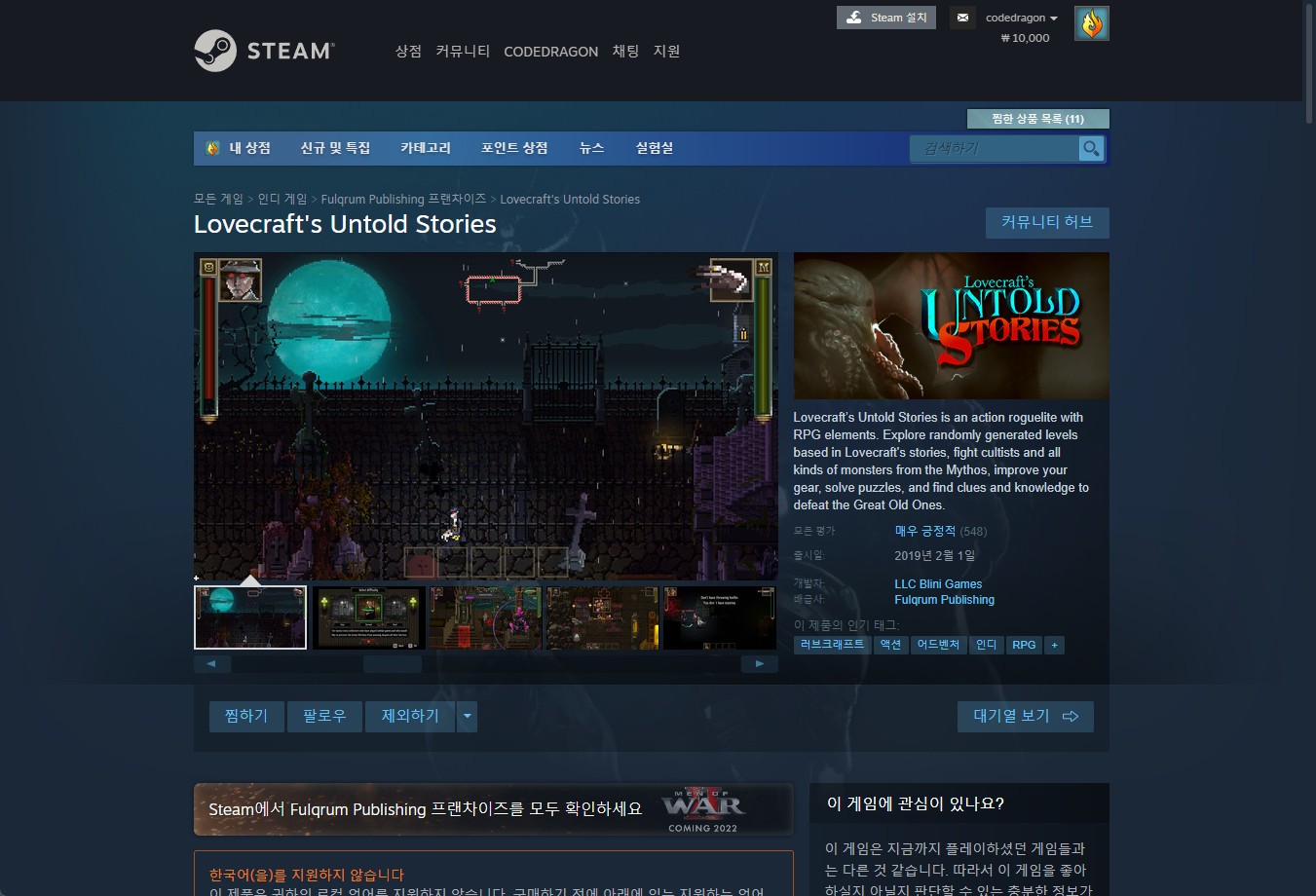 - "Lovecraft's Untold Stories" - Steam 스팀 페이지