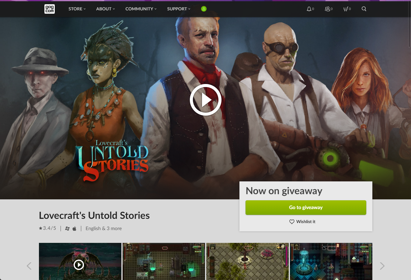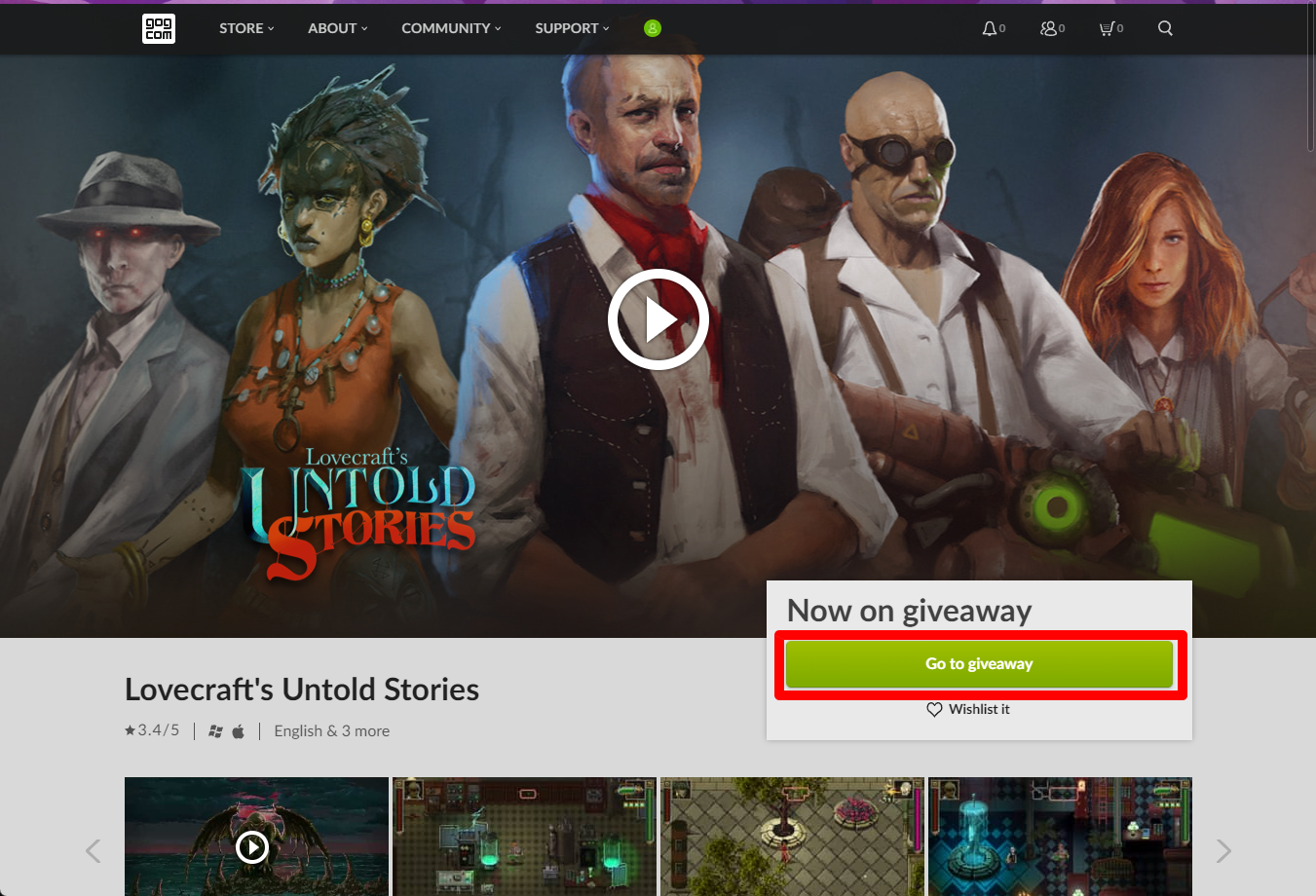 "Lovecraft's Untold Stories" 게임페이지에서 [Go to giveaway] 버튼을 클릭합니다.