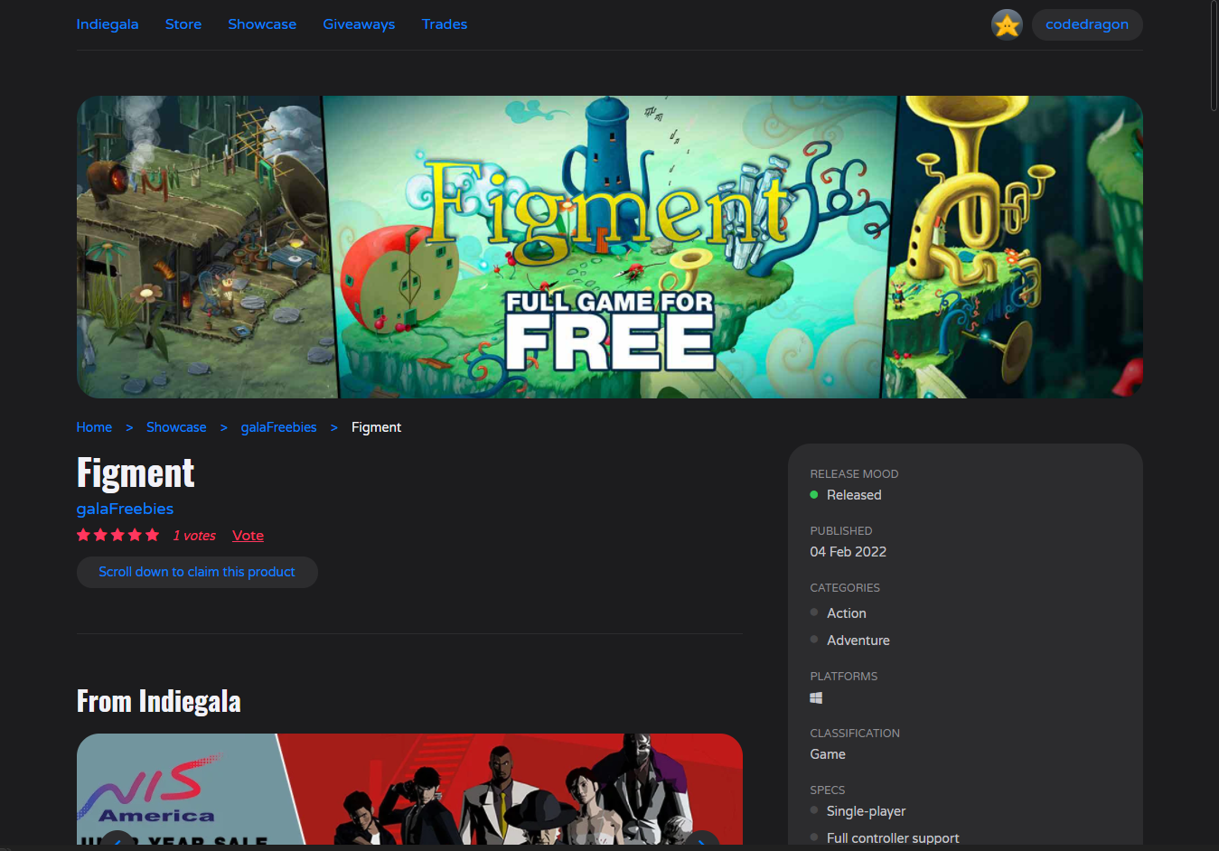 ₩20,000 -> ₩ 0(Free) Figment 피그먼트 무료 - 인디갈라 indiegala 무료 소장 기회 기간한정 indiegala FREE GAME, Limited time