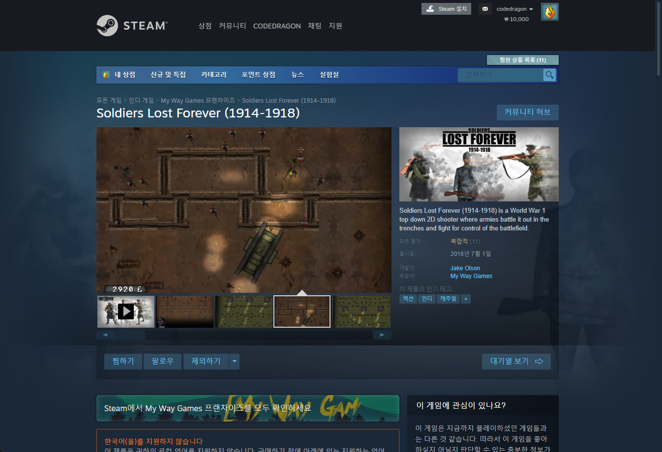 - "Soldiers Lost Forever (1914-1918)" 게임 보유 확인 & 설치파일 다운로드