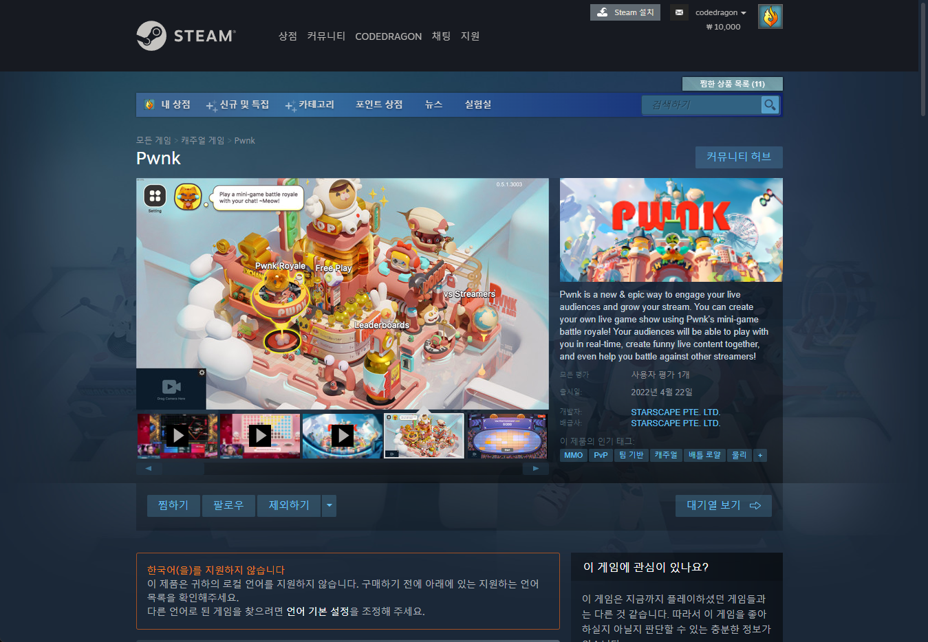 "Pwnk" 페이지를 내려 [게임 플레이]를 클릭하면 됩니다.