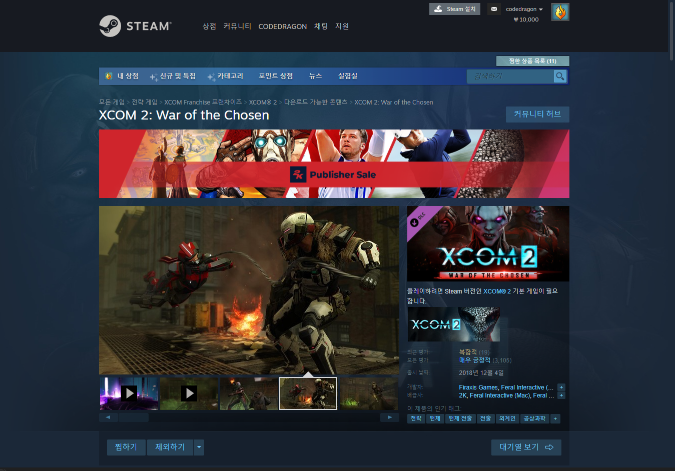 "XCOM 2: War of the Chosen" 구매 금액 ₩ 45,000