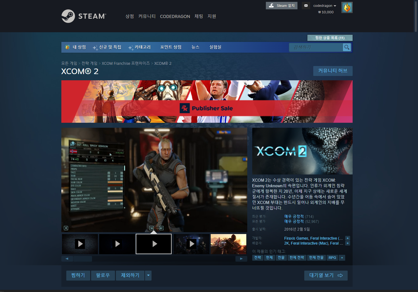 "XCOM 2" 할인 금액 ₩ 3,740 (-94%)