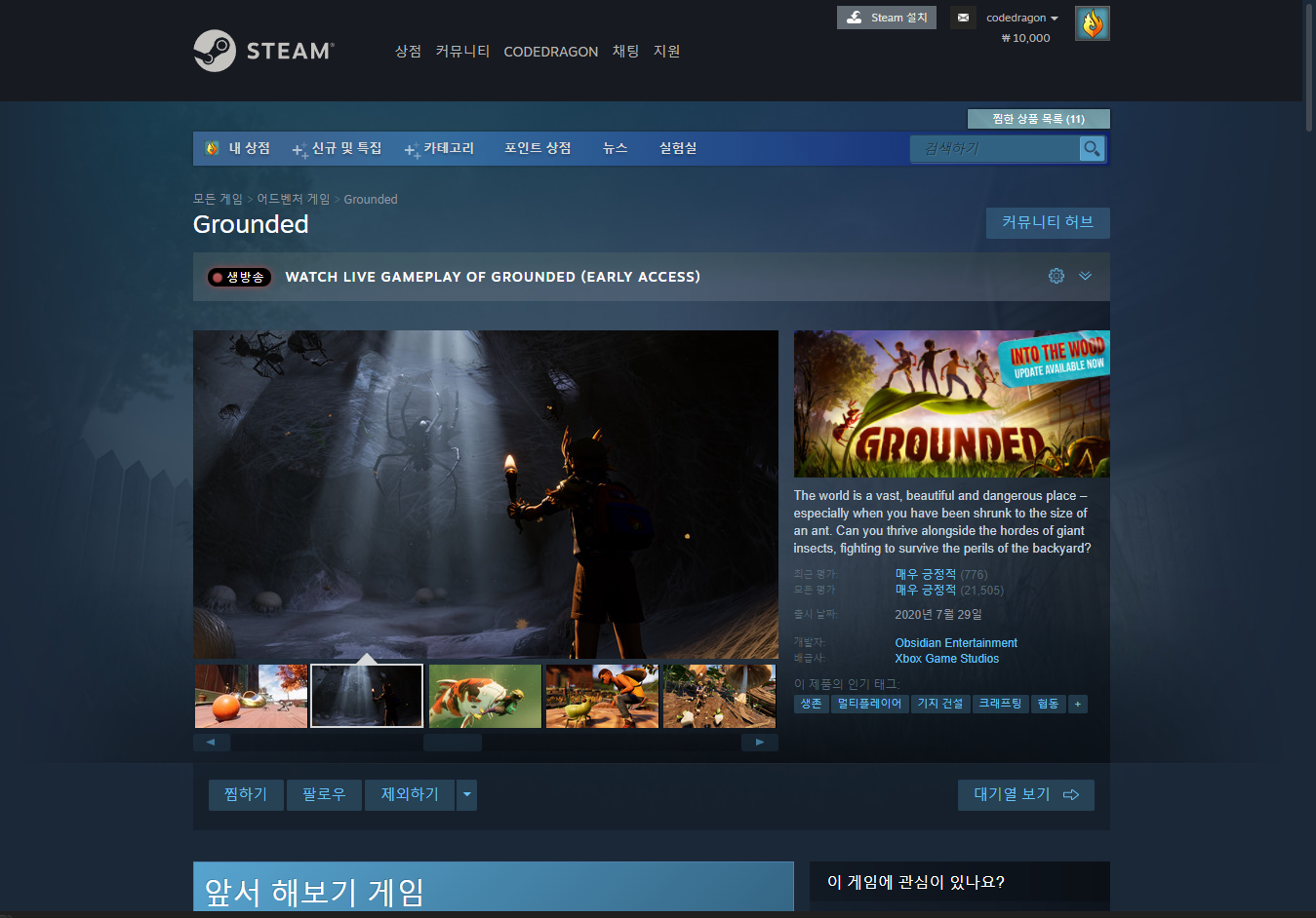 "Grounded" 게임페이지에 접속합니다.