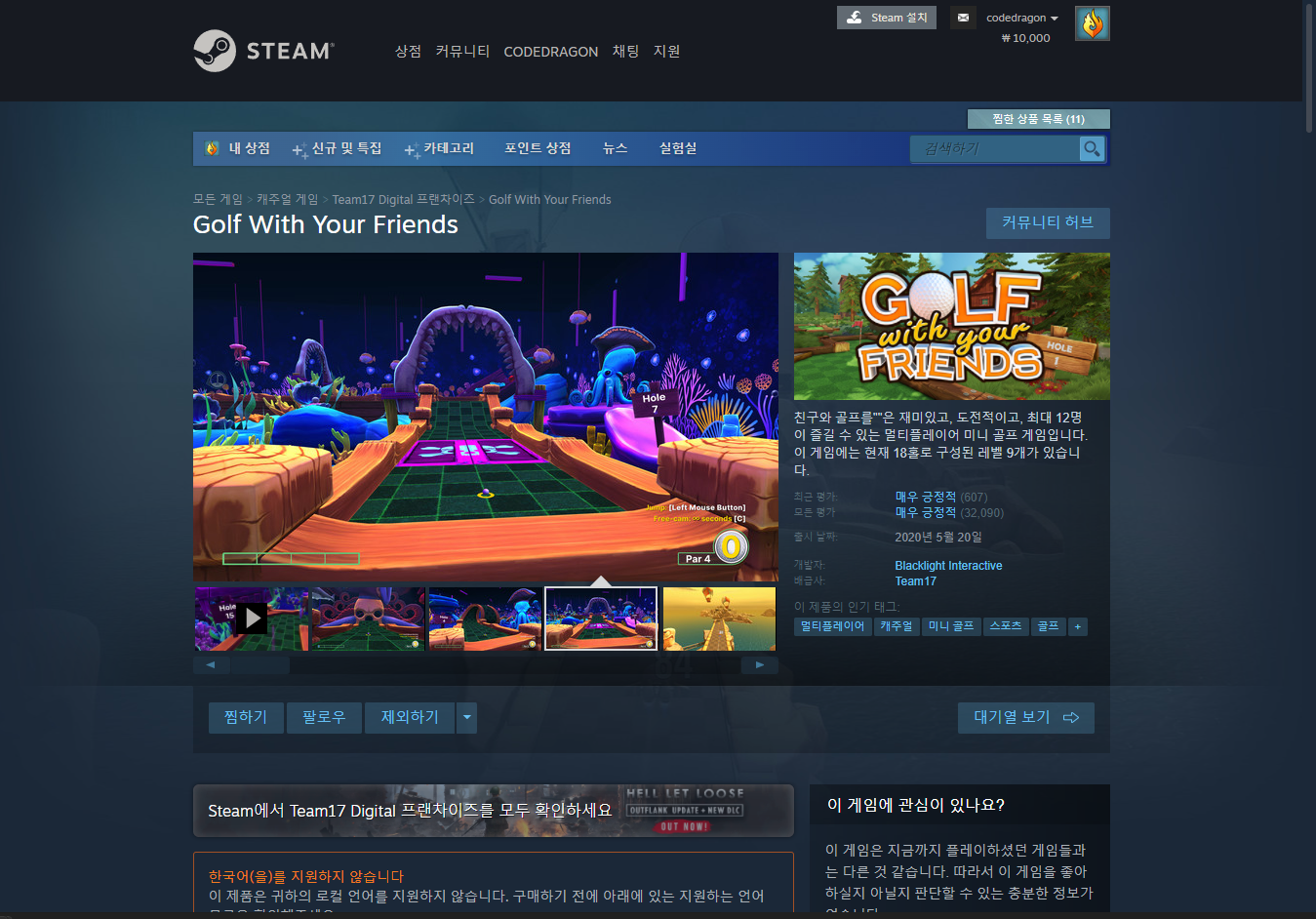 금주 게임은 "스포츠" 게임인 "Golf With Your Friends" 입니다.