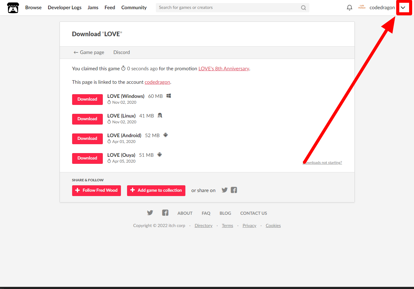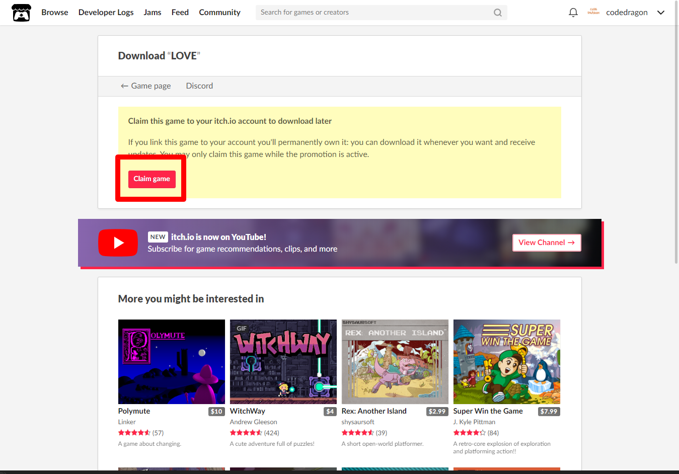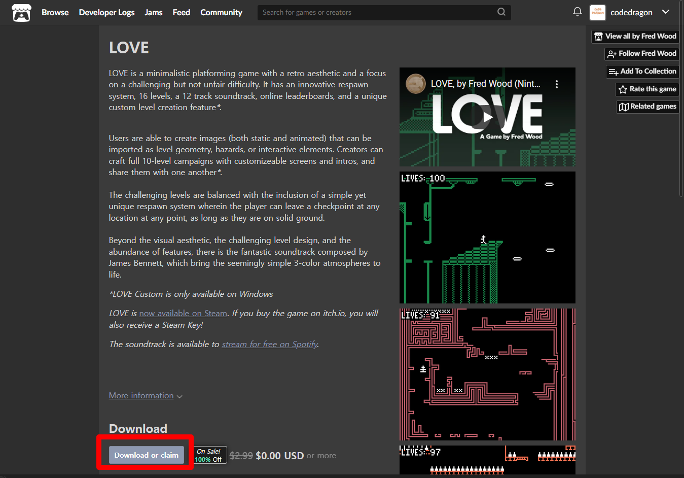 "LOVE" 페이지에 있는 [Download or claim]을 클릭합니다.