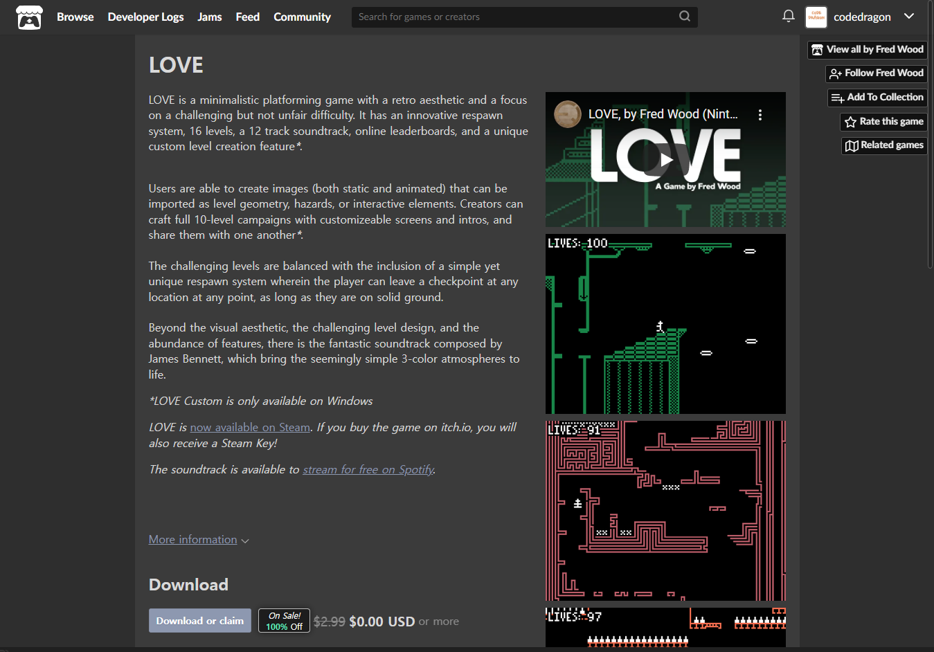 ₩3,300 -> ₩0(Free) LOVE 러브 무료로 받기 영구소장 - itch.io 잇치 닷 아이오 한시적 무료 소장하기