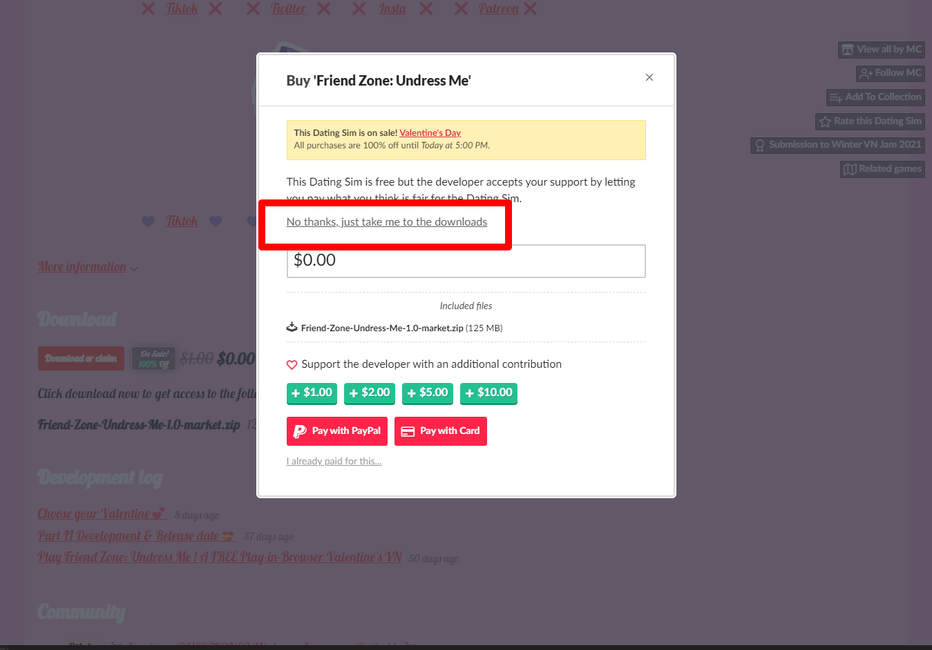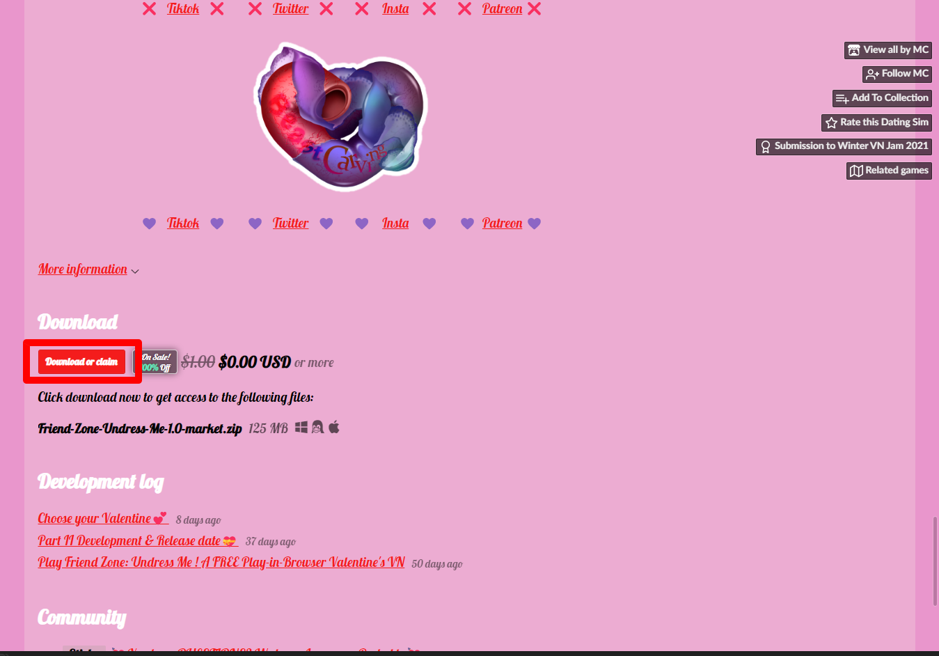 "Friend Zone: Undress Me" 페이지를 내려서 [Download or claim]을 클릭합니다.