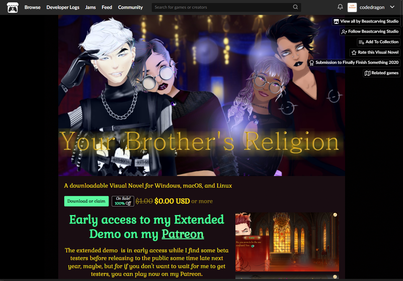 - "Your Brother's Religion (Official Demo)" 게임 페이지