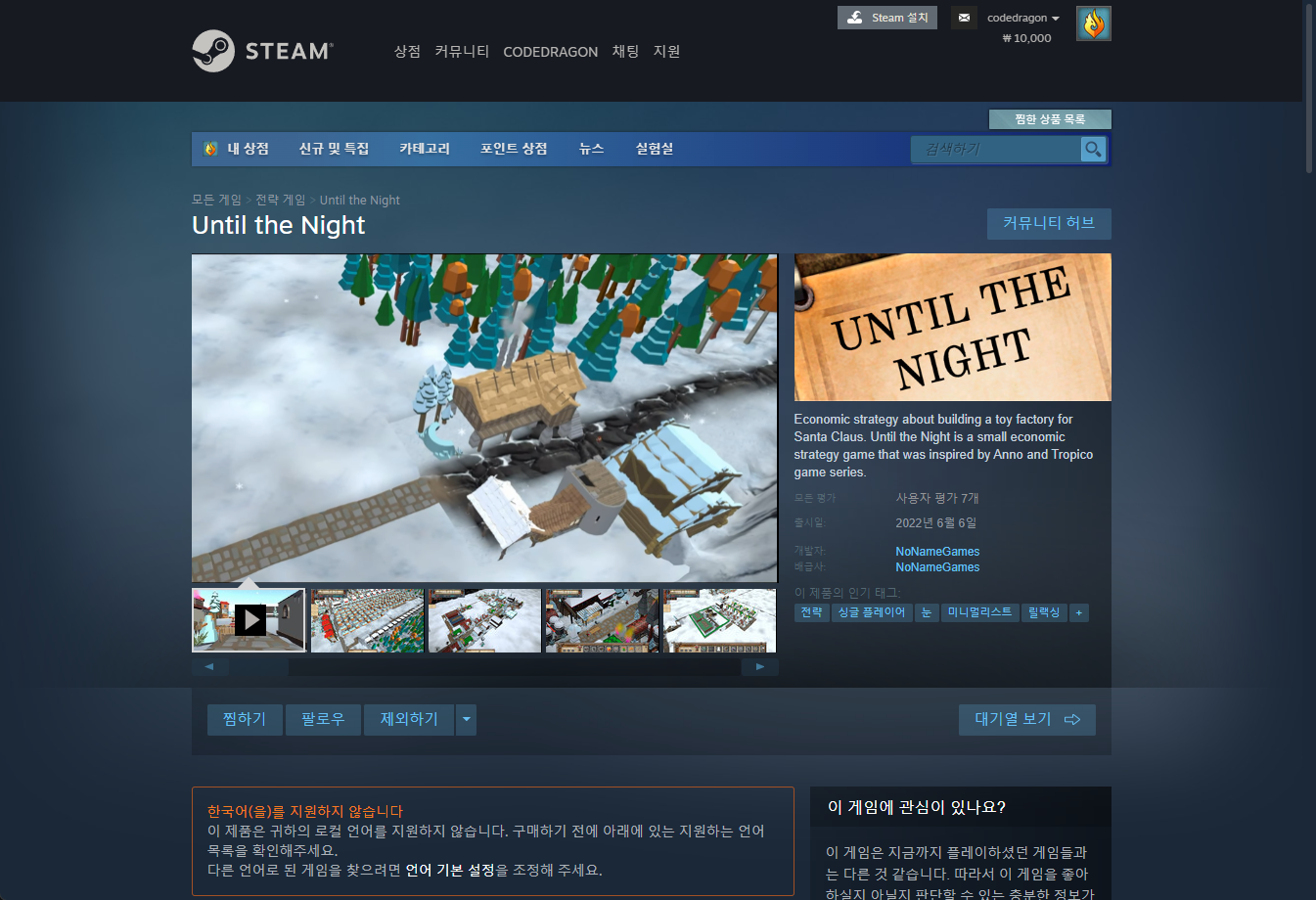 "Until the Night" 페이지를 내려 [게임 플레이]를 클릭하면 됩니다.
