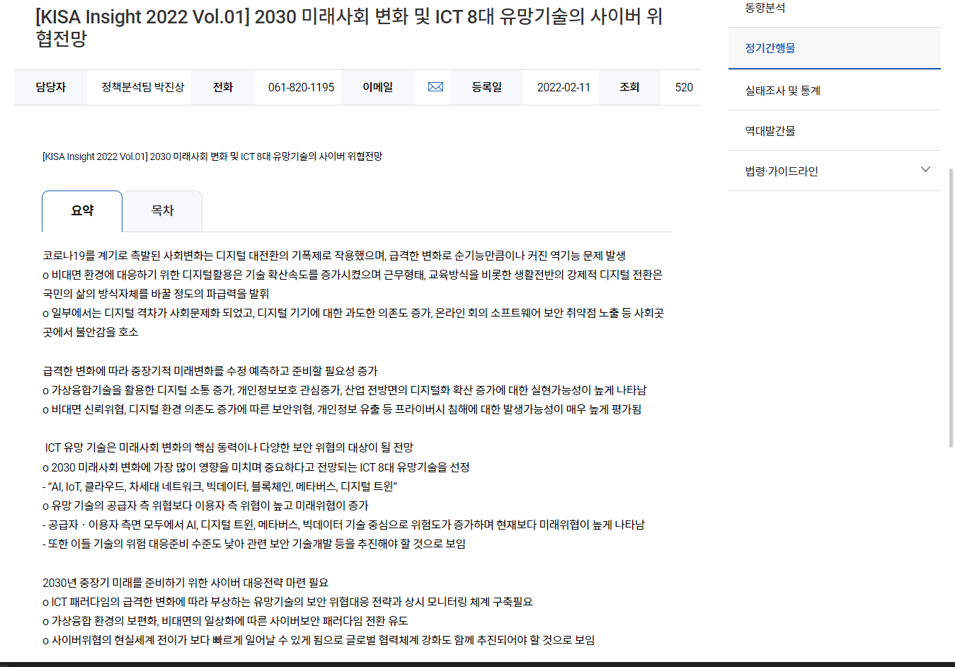 [KISA Insight 2022 Vol.01] 2030 미래사회 변화 및 ICT 8대 유망기술의 사이버 위협전망 pdf