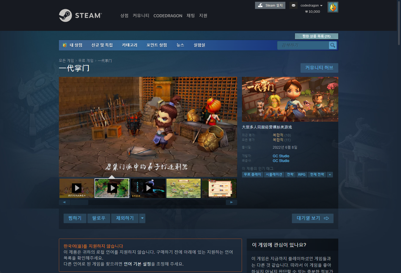 "一代掌门 세대장문" 스팀 페이지 입니다.