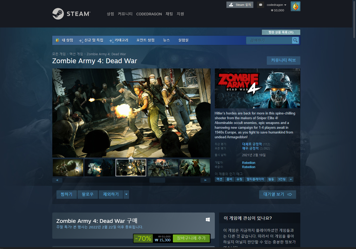- "Zombie Army 4: Dead War"게임 페이지 (Base)