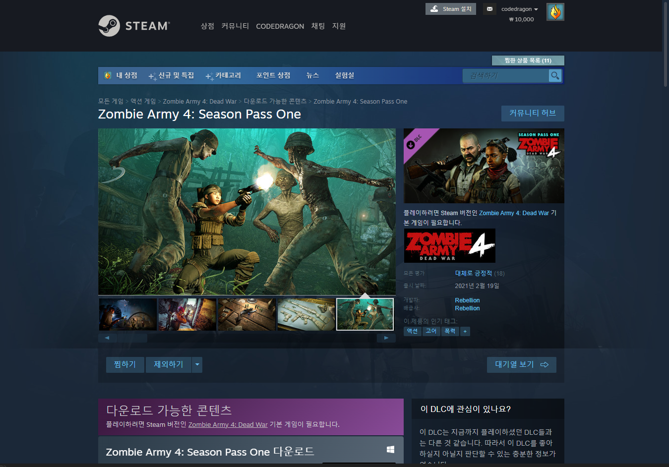 "Zombie Army 4: Season Pass One" 게임 페이지 (DLC)