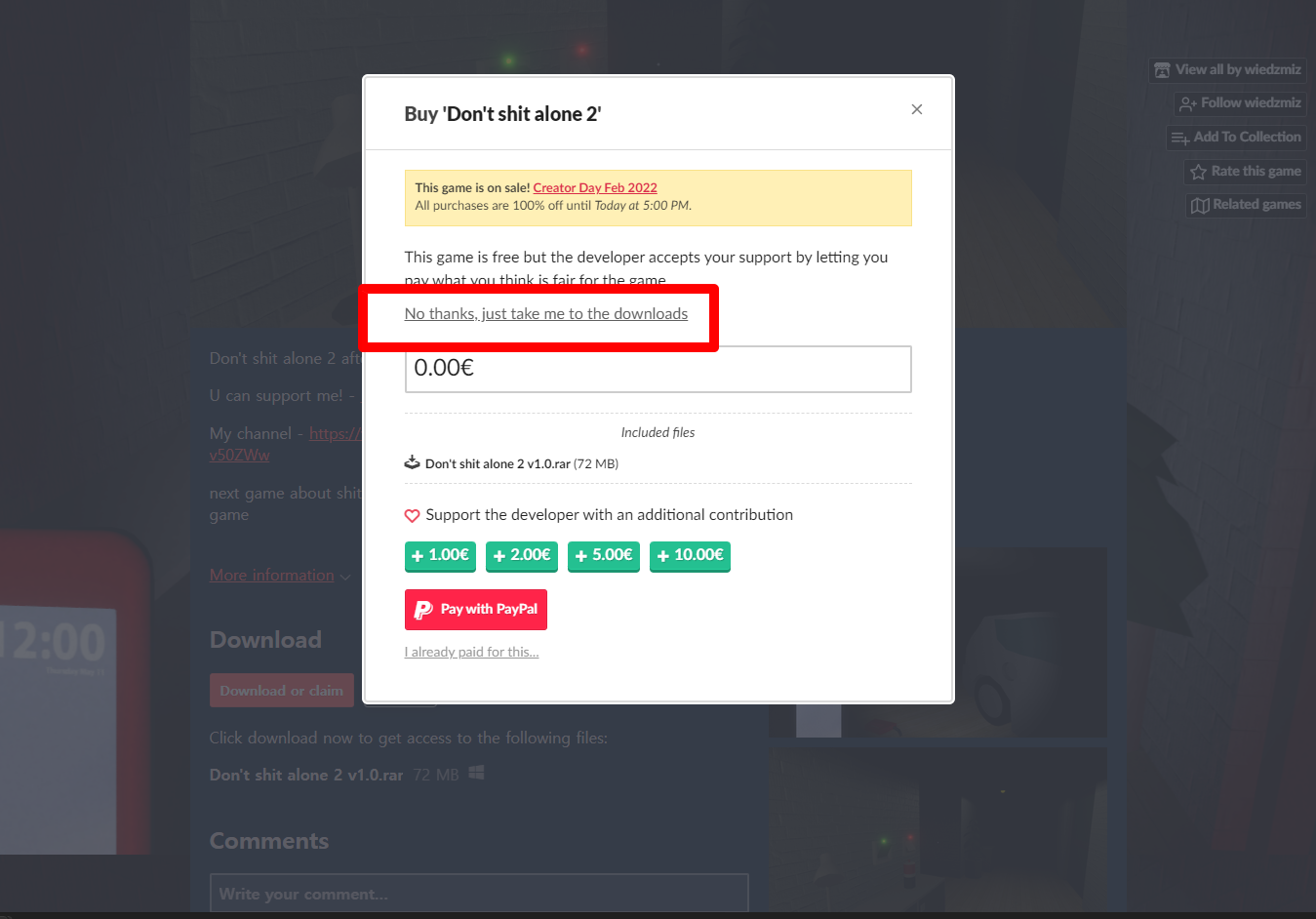 "Don't shit alone 2" 페이지를 조금내려서 [Download or claim]을 클릭합니다.